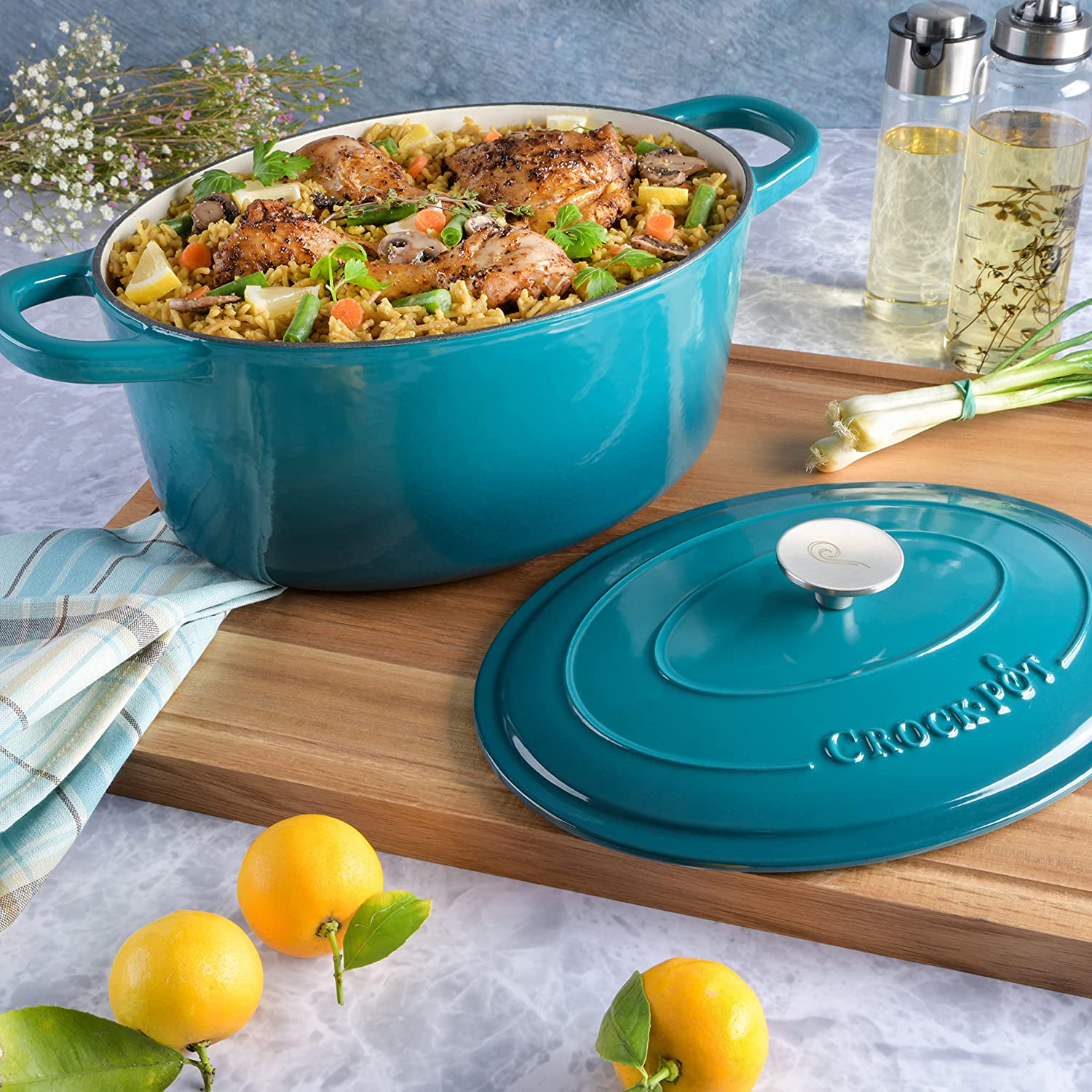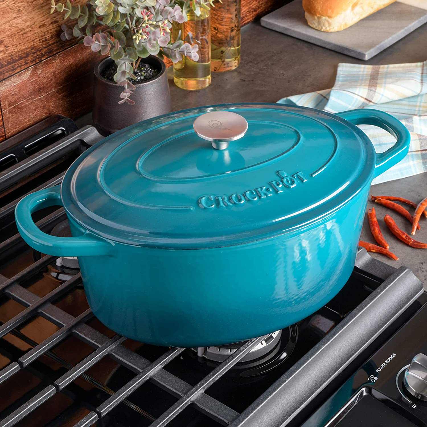 Crock-Pot 109475.02 Artisan Oval Enameled Cast Iron Dutch Oven. 7-Quart. Teal Ombre