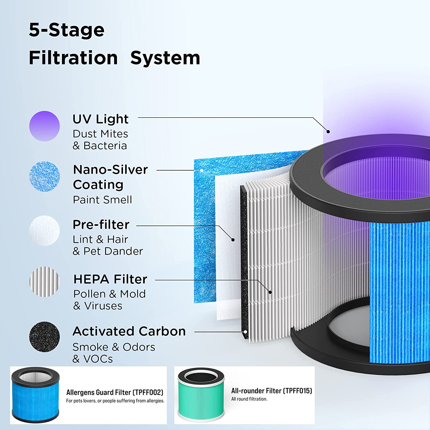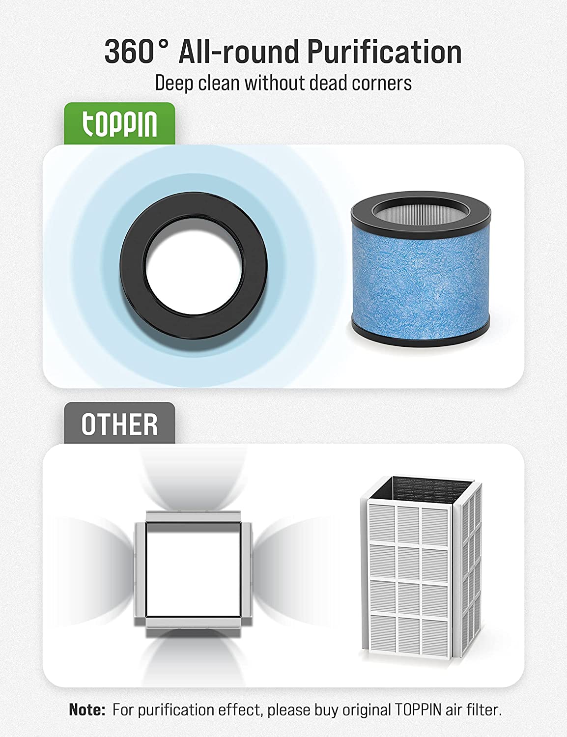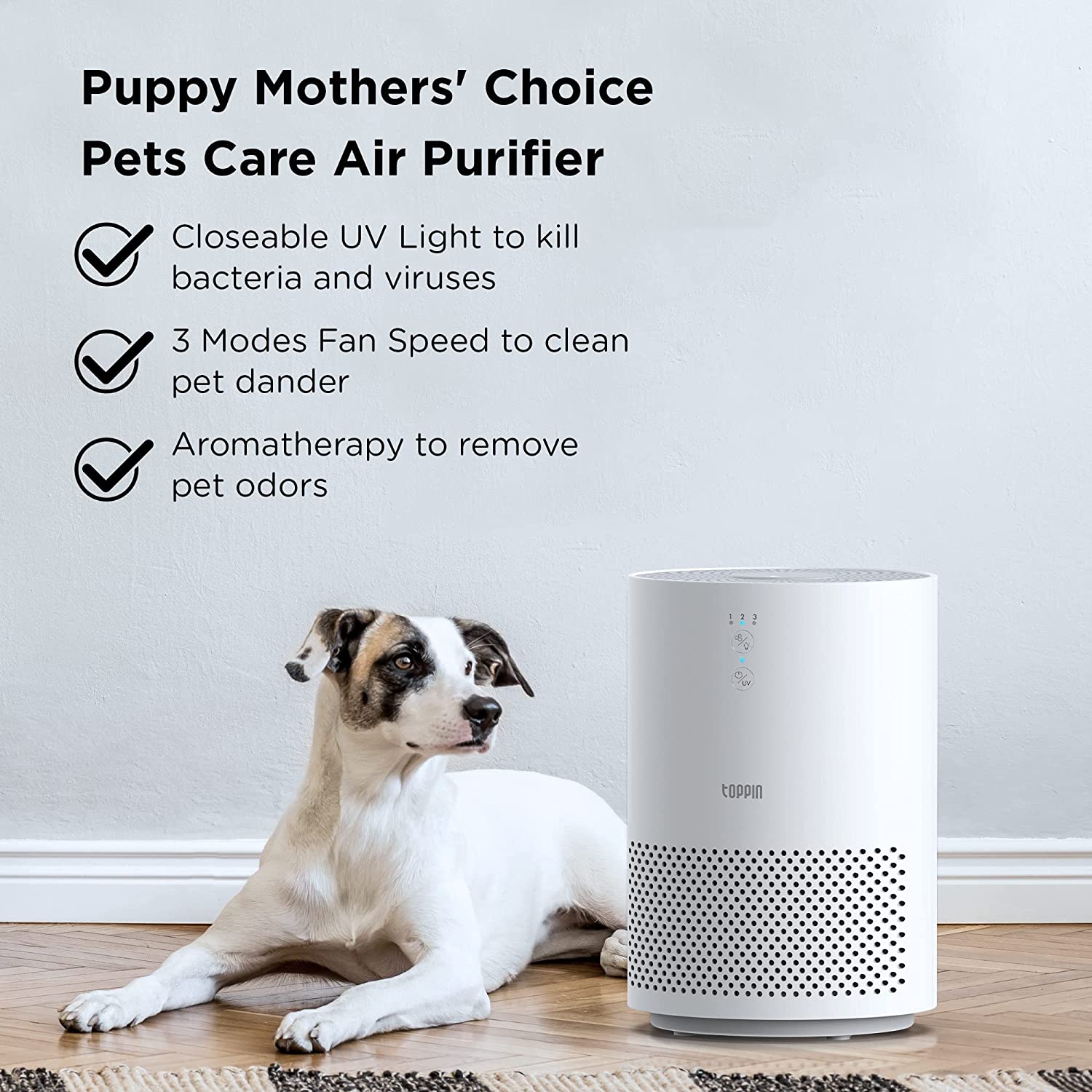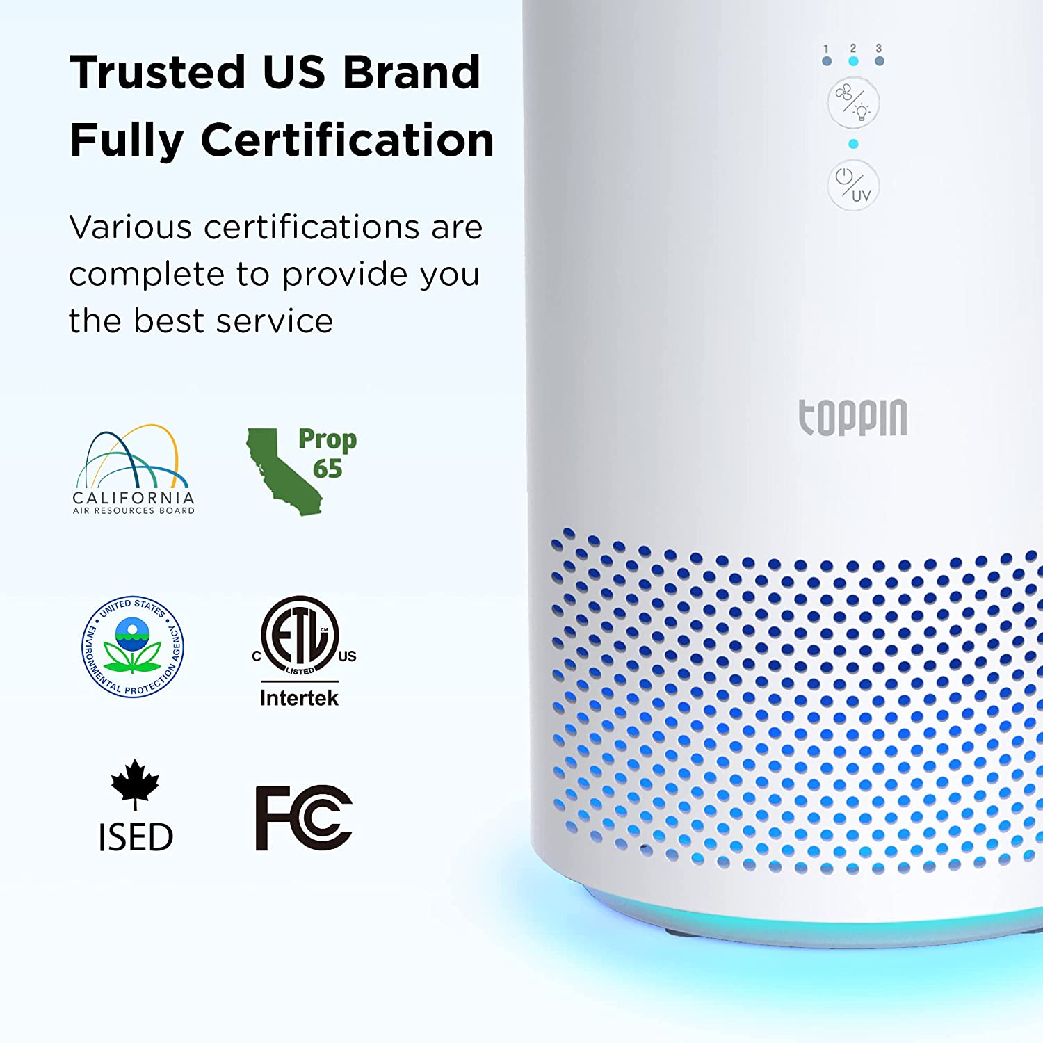 TOPPIN HEPA Air Purifiers for Home Pets Hair-for Bedroom with UV Light. Air Purifier For Dust Odors Smoke Pollen Eliminate Dander Airborne Contaminants Air Cleaner For Office. TPAP002. White