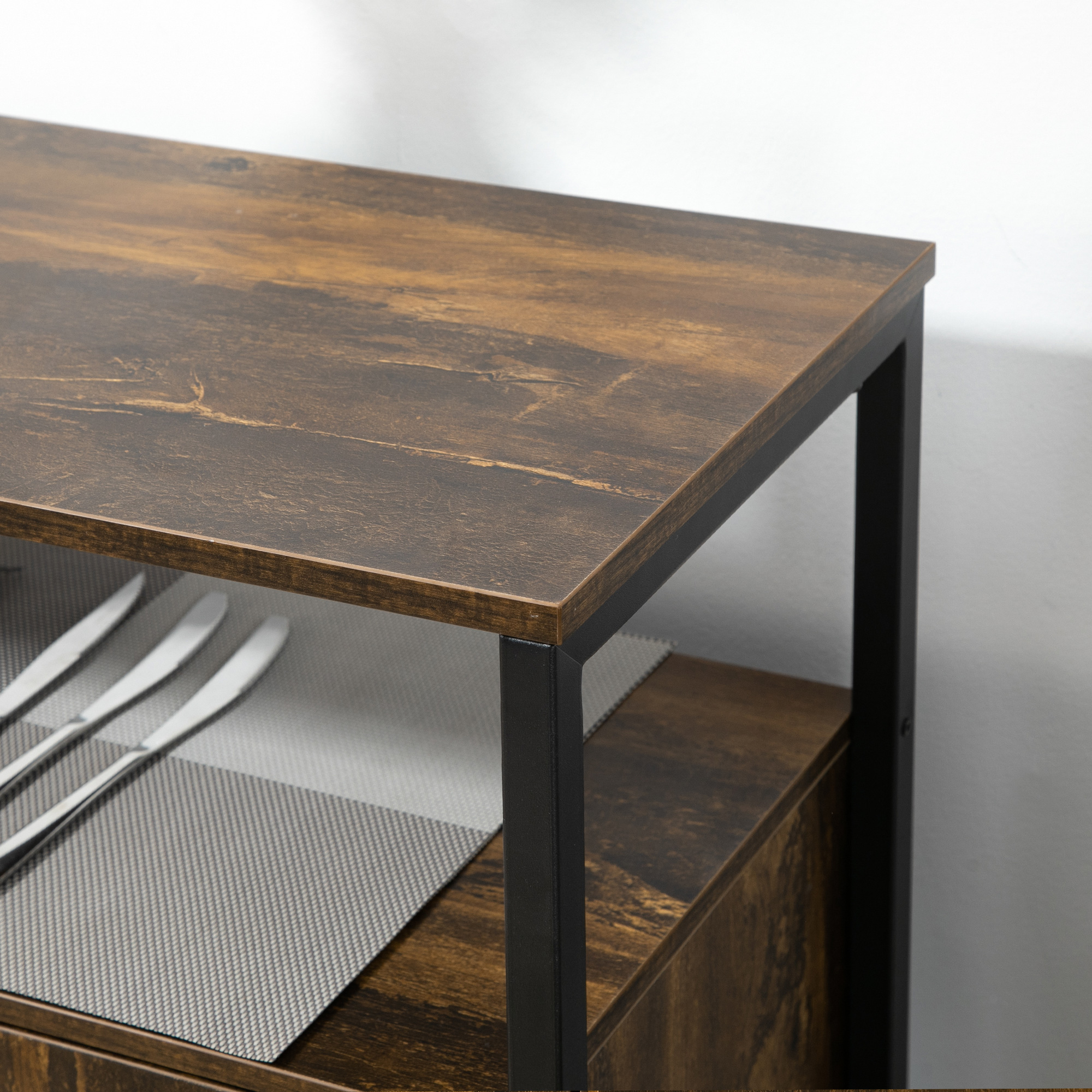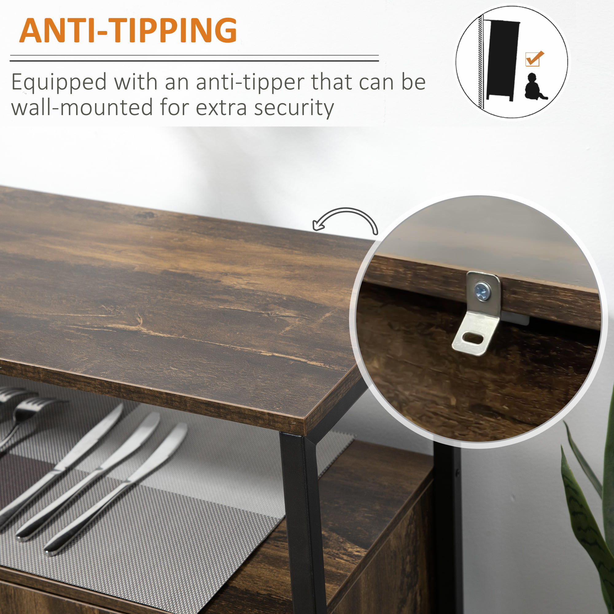 HOMCOM Industrial Kitchen Sideboard. Buffet Cabinet with Storage Open Compartment and Adjustable Shelves for Living Room. Bedroom. Hallway. Rustic Brown