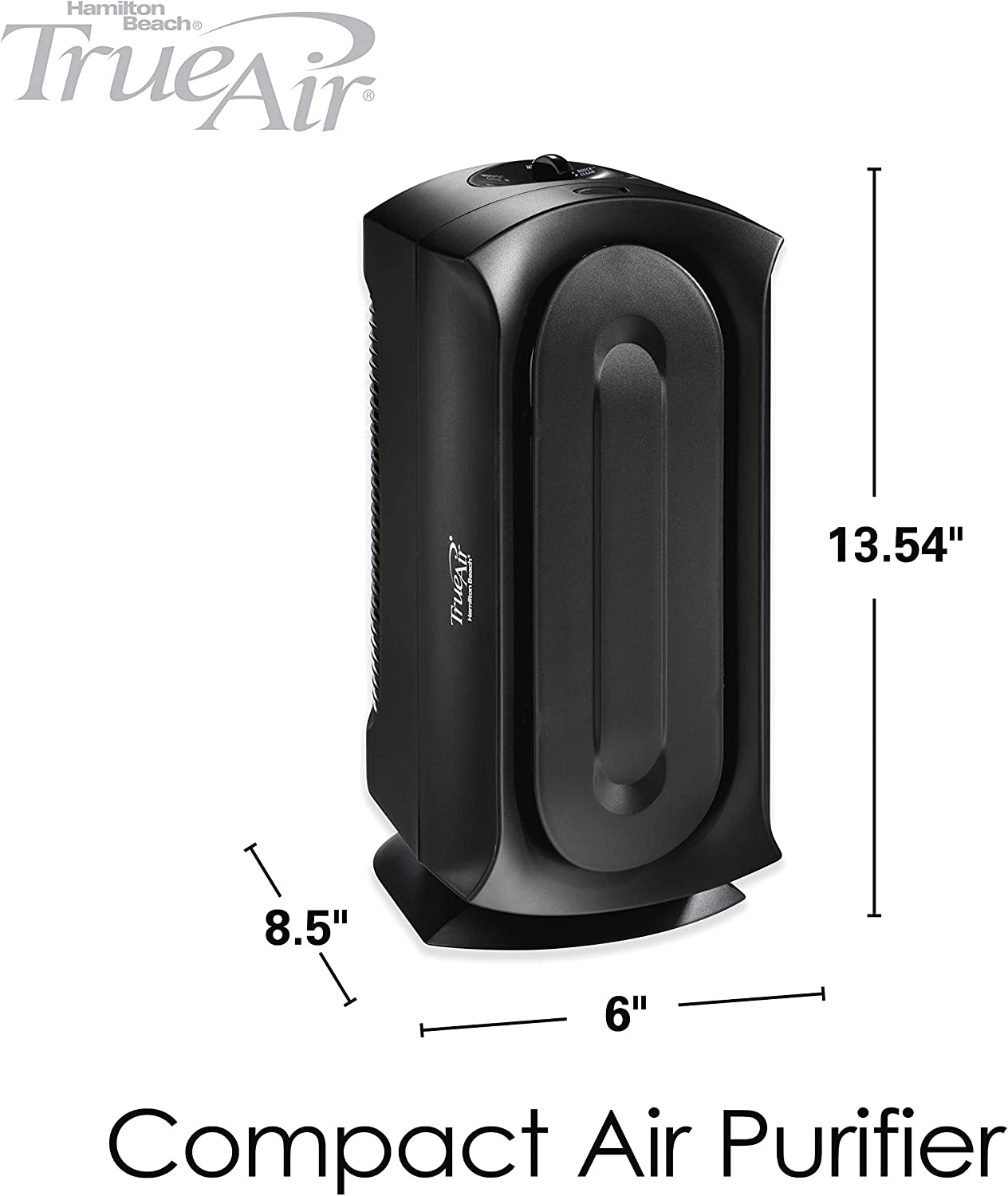 Hamilton Beach TrueAir Air Purifier with Permanent HEPA Filter for Home or Office and Pets. Whisper Quiet. 160 sq ft. Black