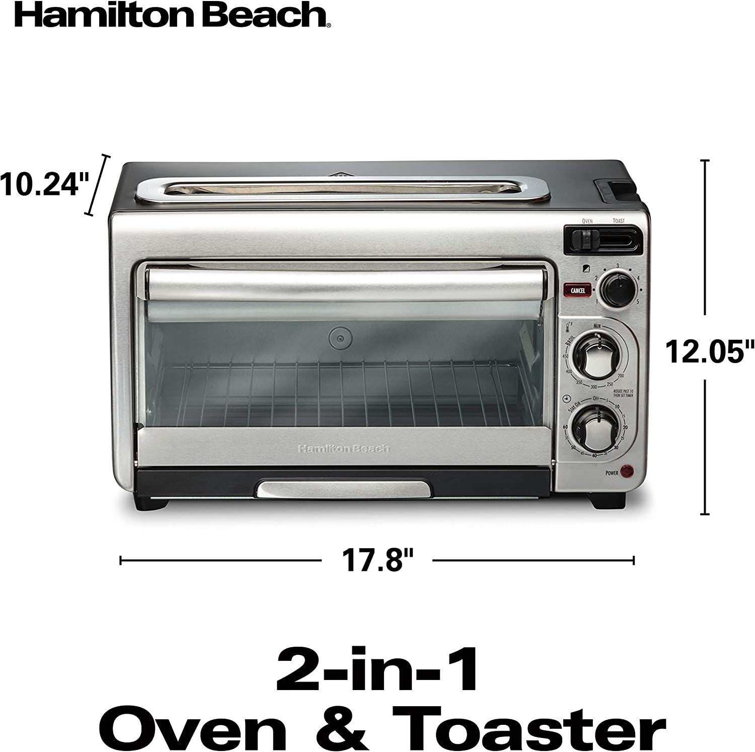 Hamilton Beach 2-in-1 Countertop Oven and Long Slot Toaster. Stainless Steel. 60 Minute Timer and Automatic Shut Off (31156)