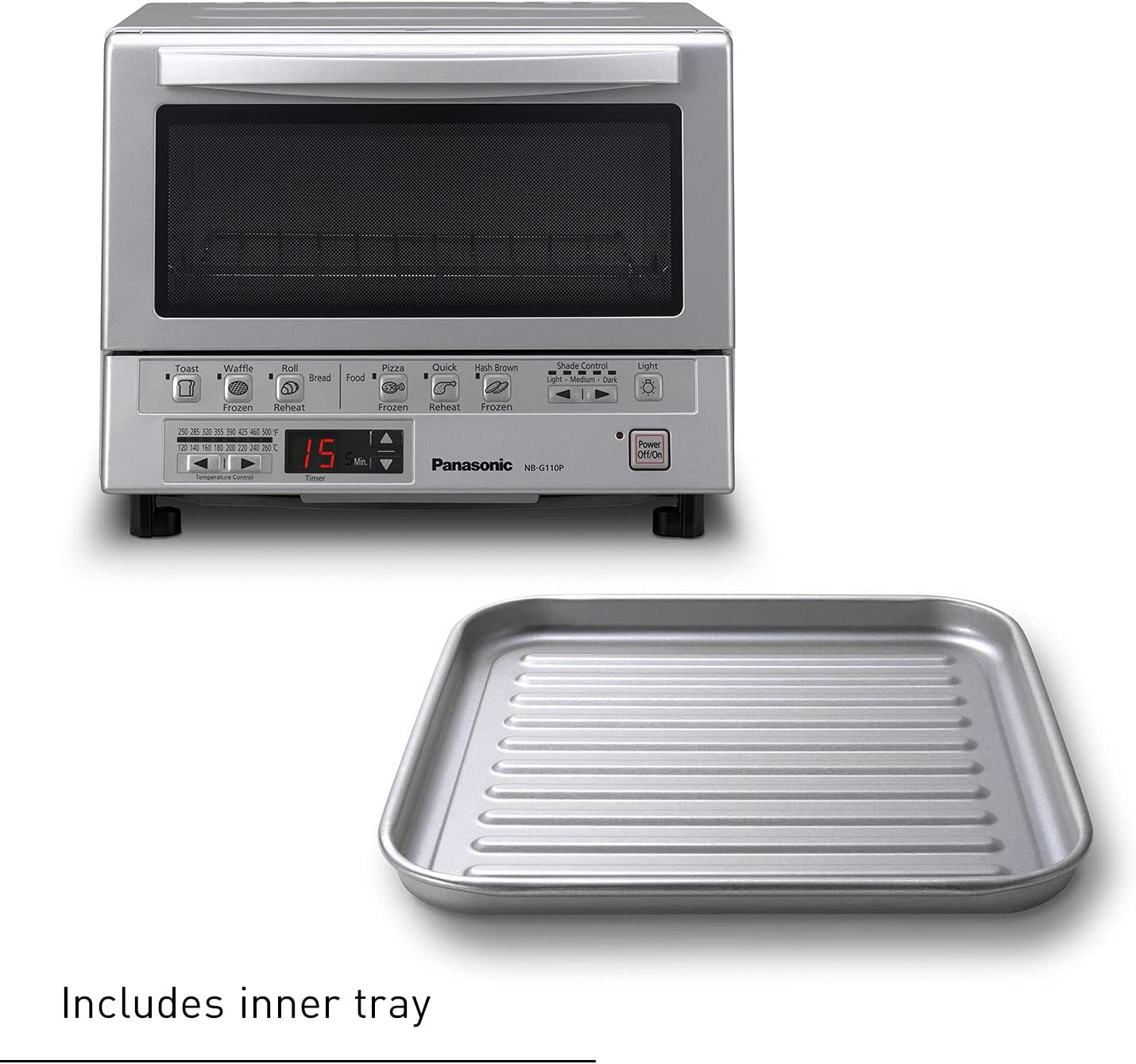 Panasonic Toaster Oven FlashXpress with Double Infrared Heating and Removable 9-Inch Inner Baking Tray. 1300W. 12 x 13 x 10.25. Silver