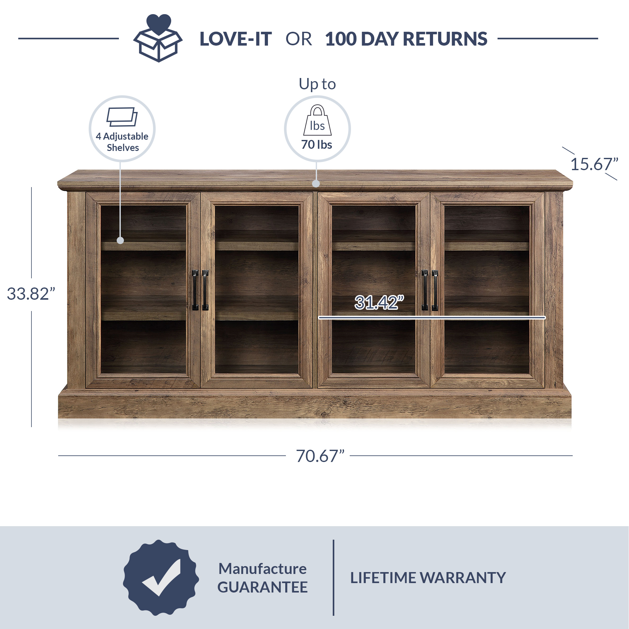 BELLEZE Modern Farmhouse Wood Sideboard Buffet - Liam (Rustic Oak)
