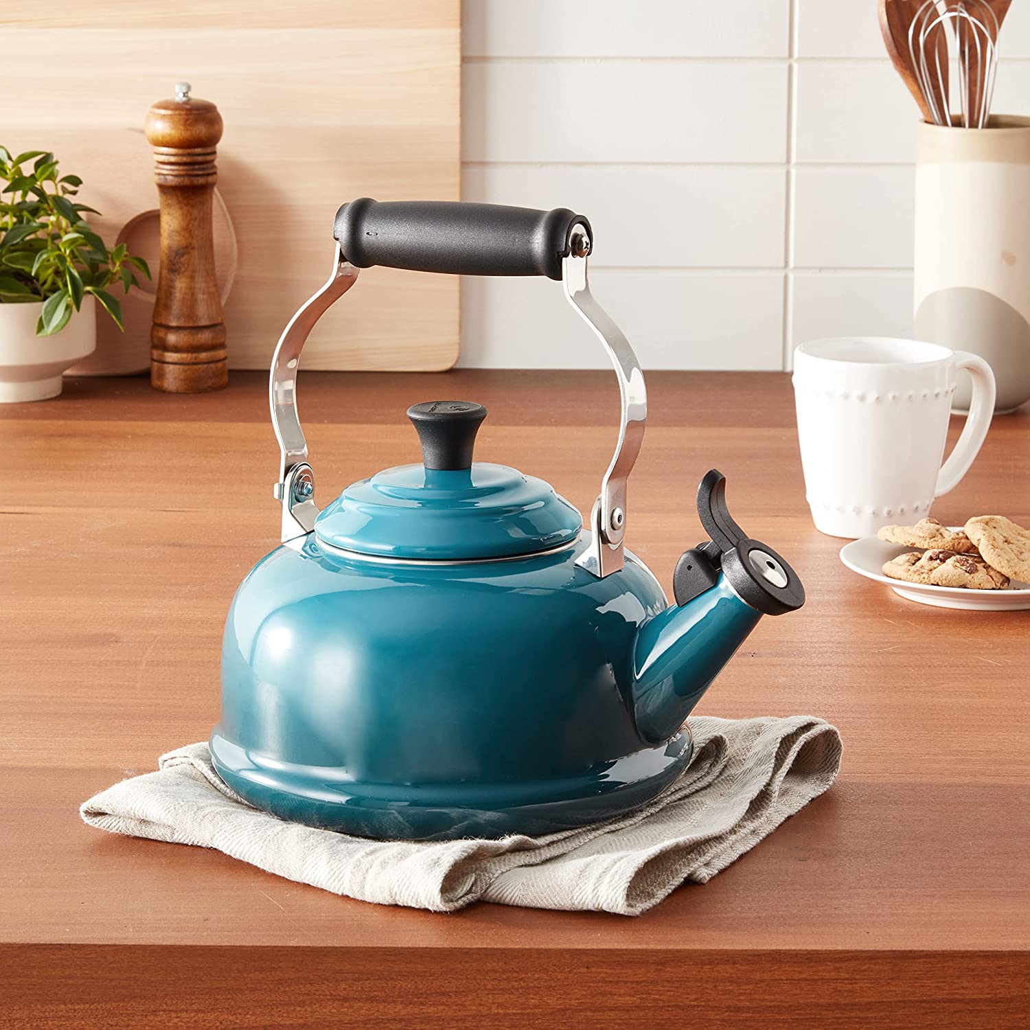 Le Creuset Q3101-7D Enamel On Steel Whistling Tea Kettle. 1.7 qt.. Deep Teal