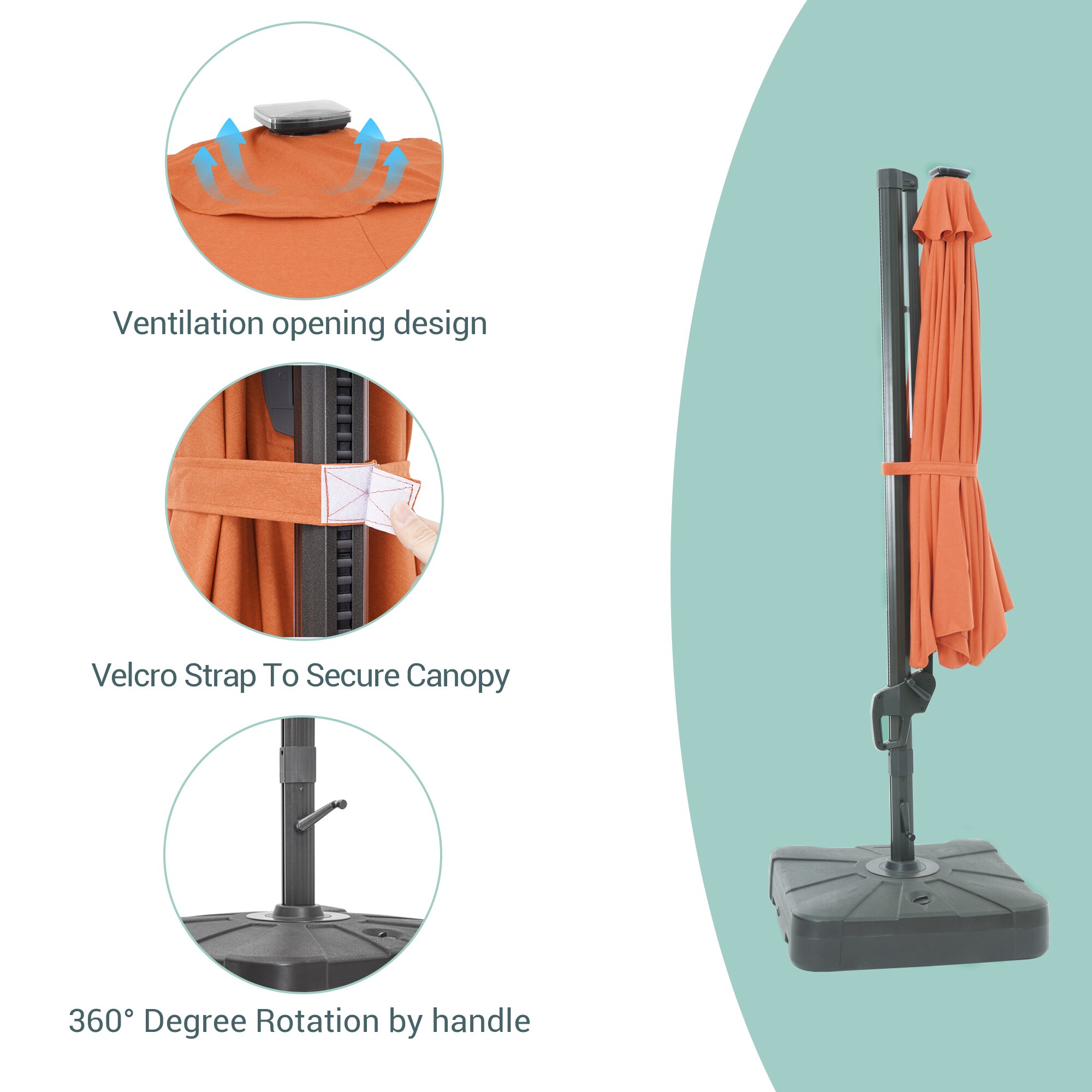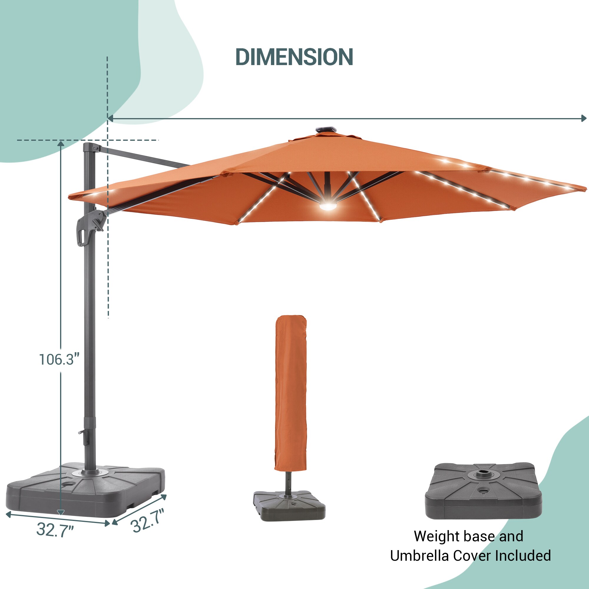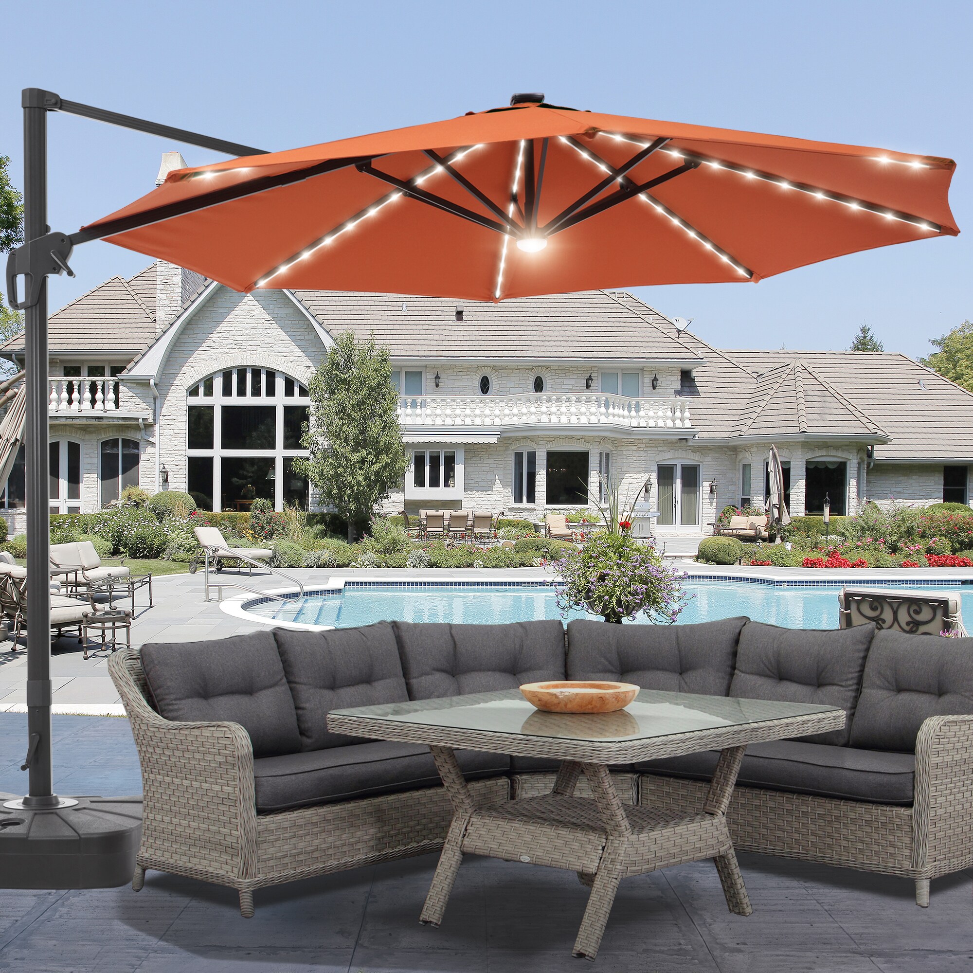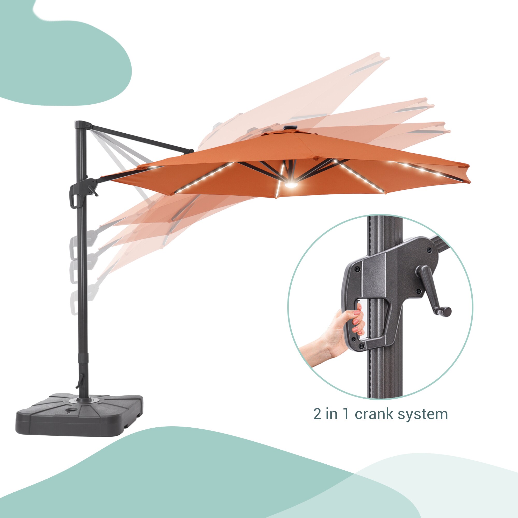 ACEGOSES 11-ft Brick Red Solar Powered Cantilever Patio Umbrella with Base