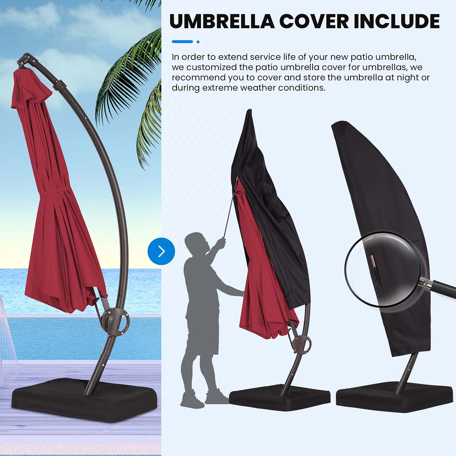 JEAREY 11-ft Red Crank Cantilever Patio Umbrella with Base