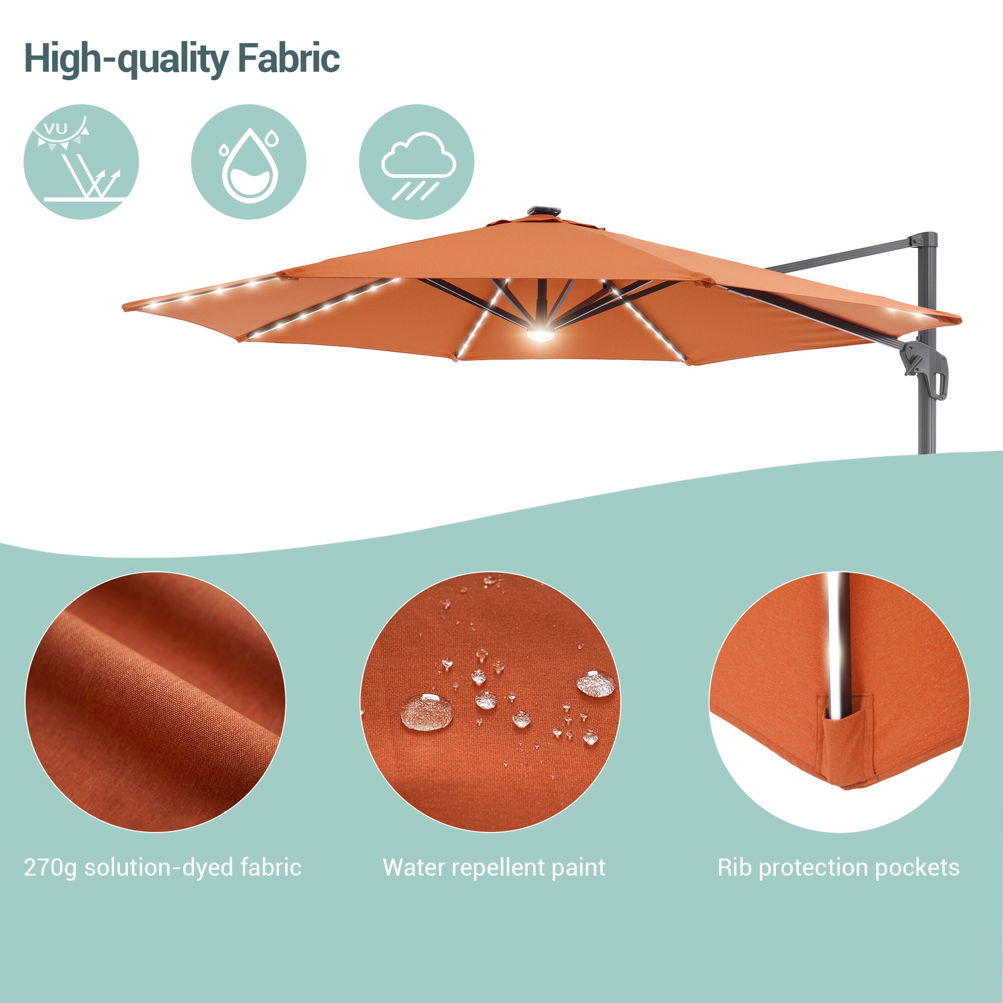 Clihome 10-ft 180g Water-proof Polyester Solar Powered Crank Cantilever Patio Umbrella