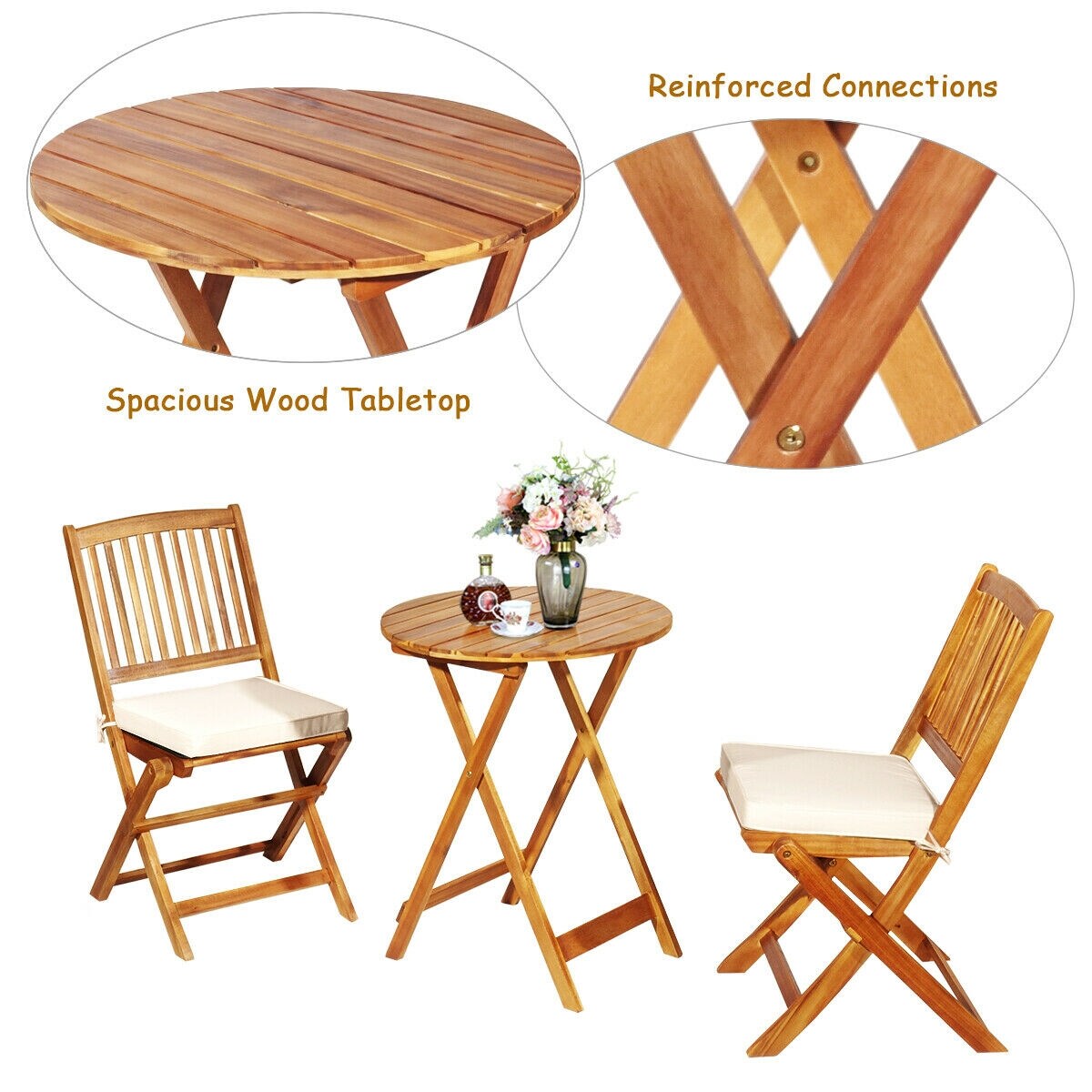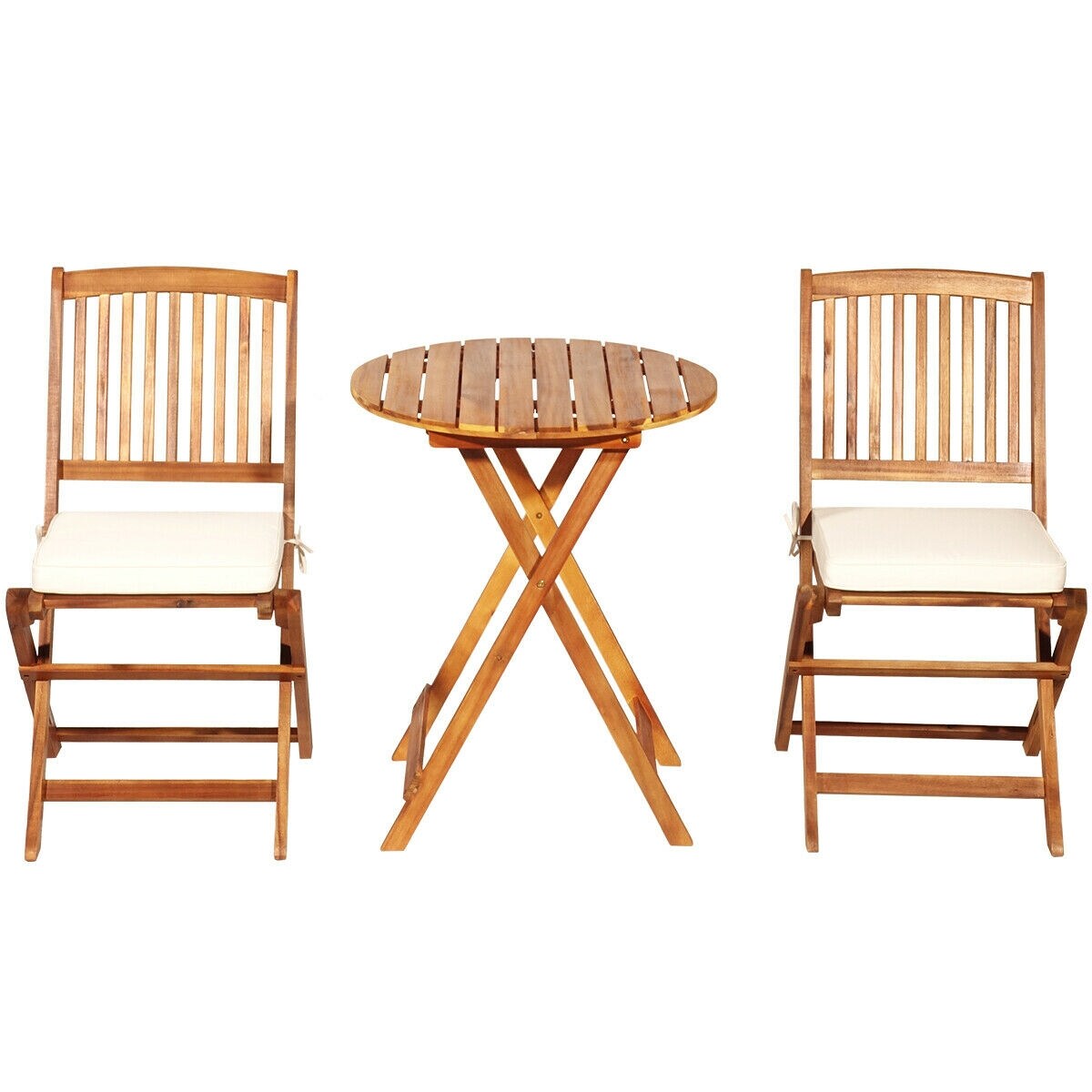 Mondawe 3-Piece Brown Bistro Patio Set with White Cushions