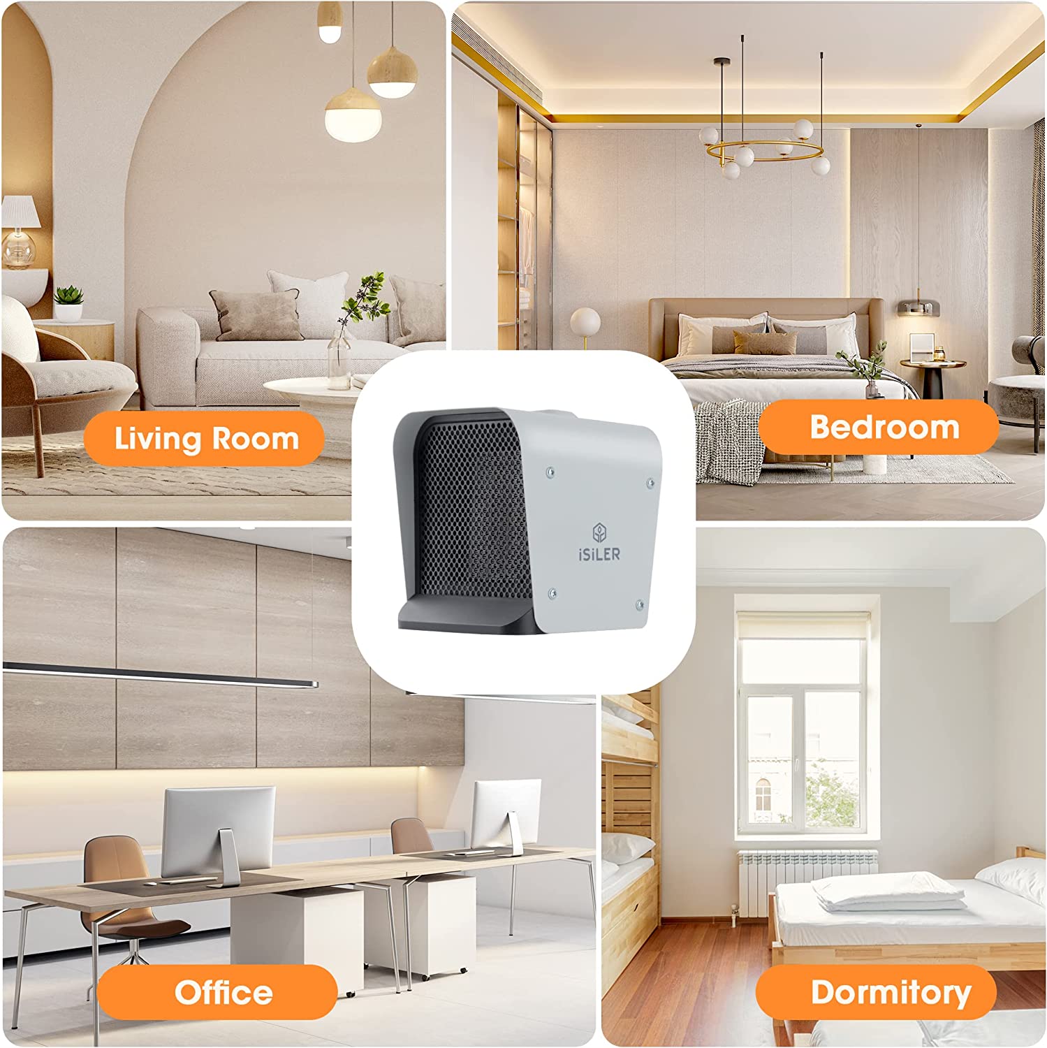 ISILER Space Heater. 1500W Portable Indoor Heater. Ceramic Space Heater Adjustable Thermostat Tip-Over Overheat Protection. Hot Fan Electric Heater for Home Office Garage with ETL Certified Grey