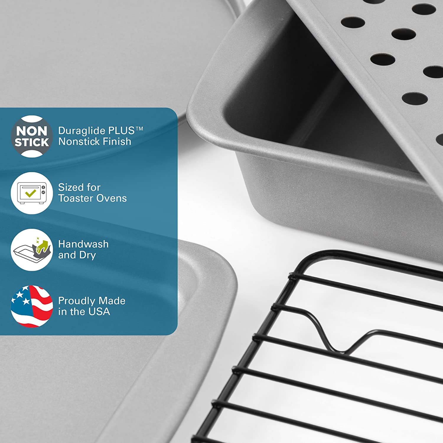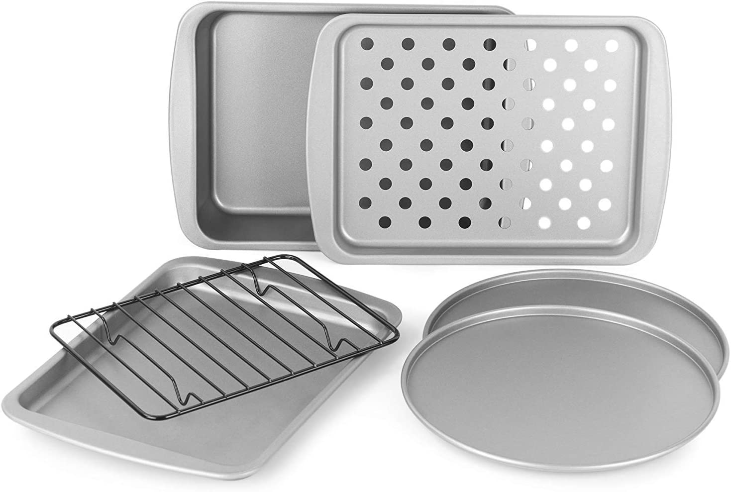 G & S Metal Products Company OvenStuff Personal Size 6-Piece Toaster Oven Set-Non-Stick Baking Pans. Easy to Clean and Perfect for Single Servings. Silver
