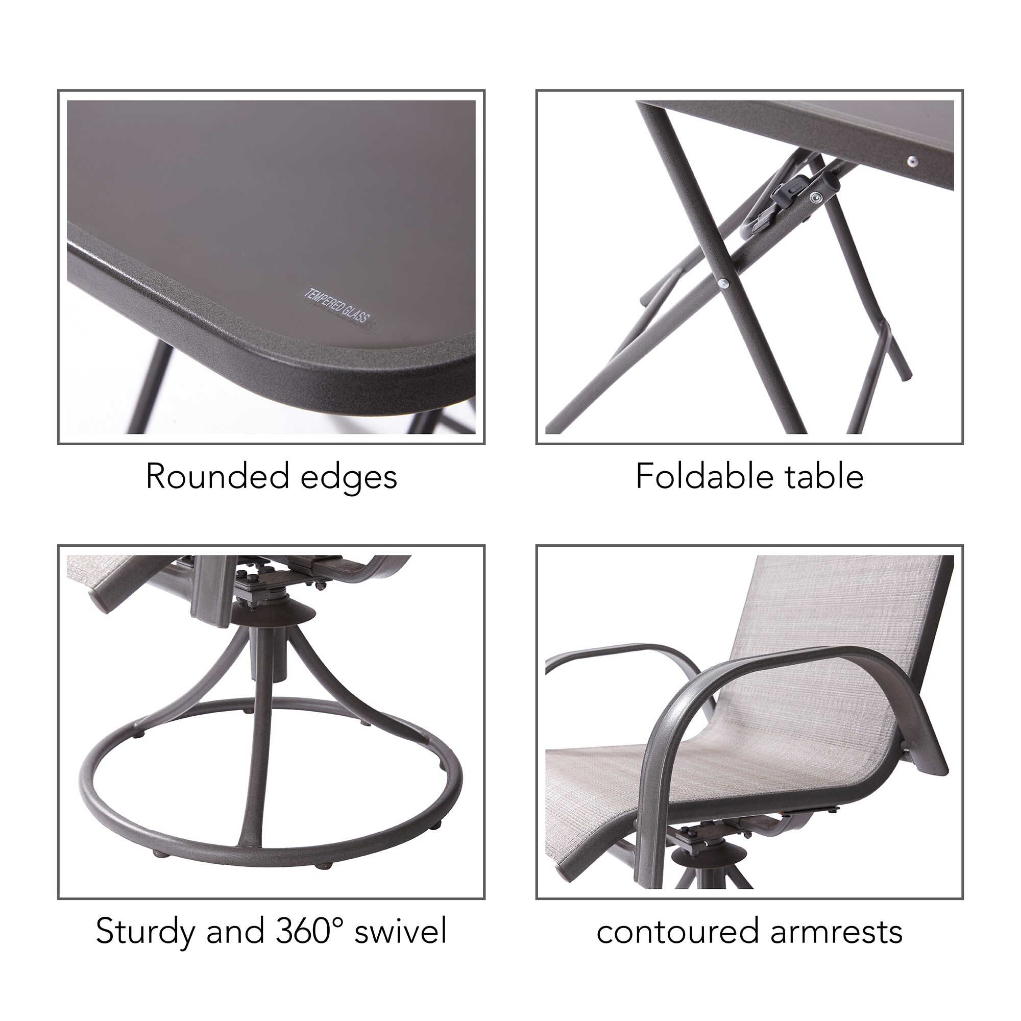 WELLFOR 3-Piece Brown Bistro Patio Set with Gray Cushions