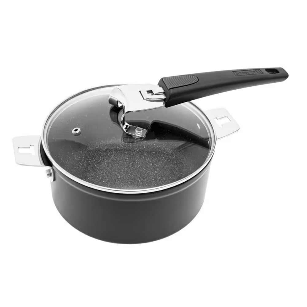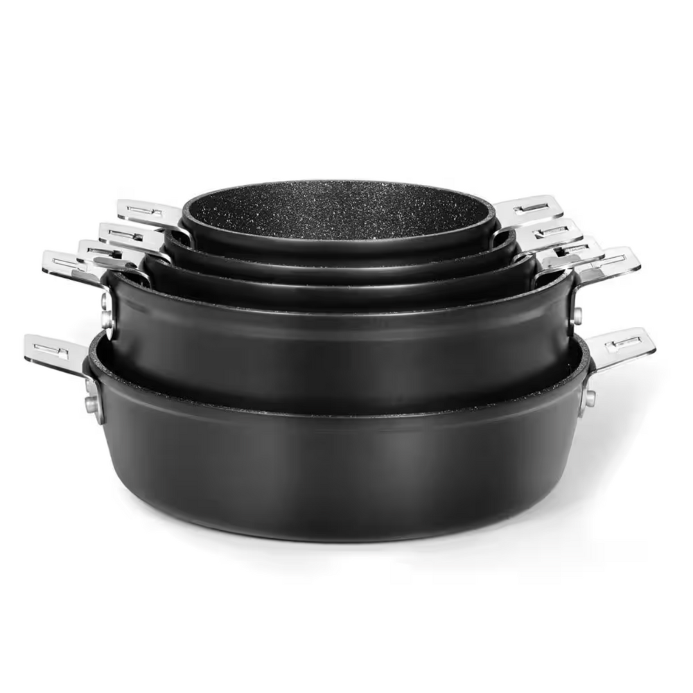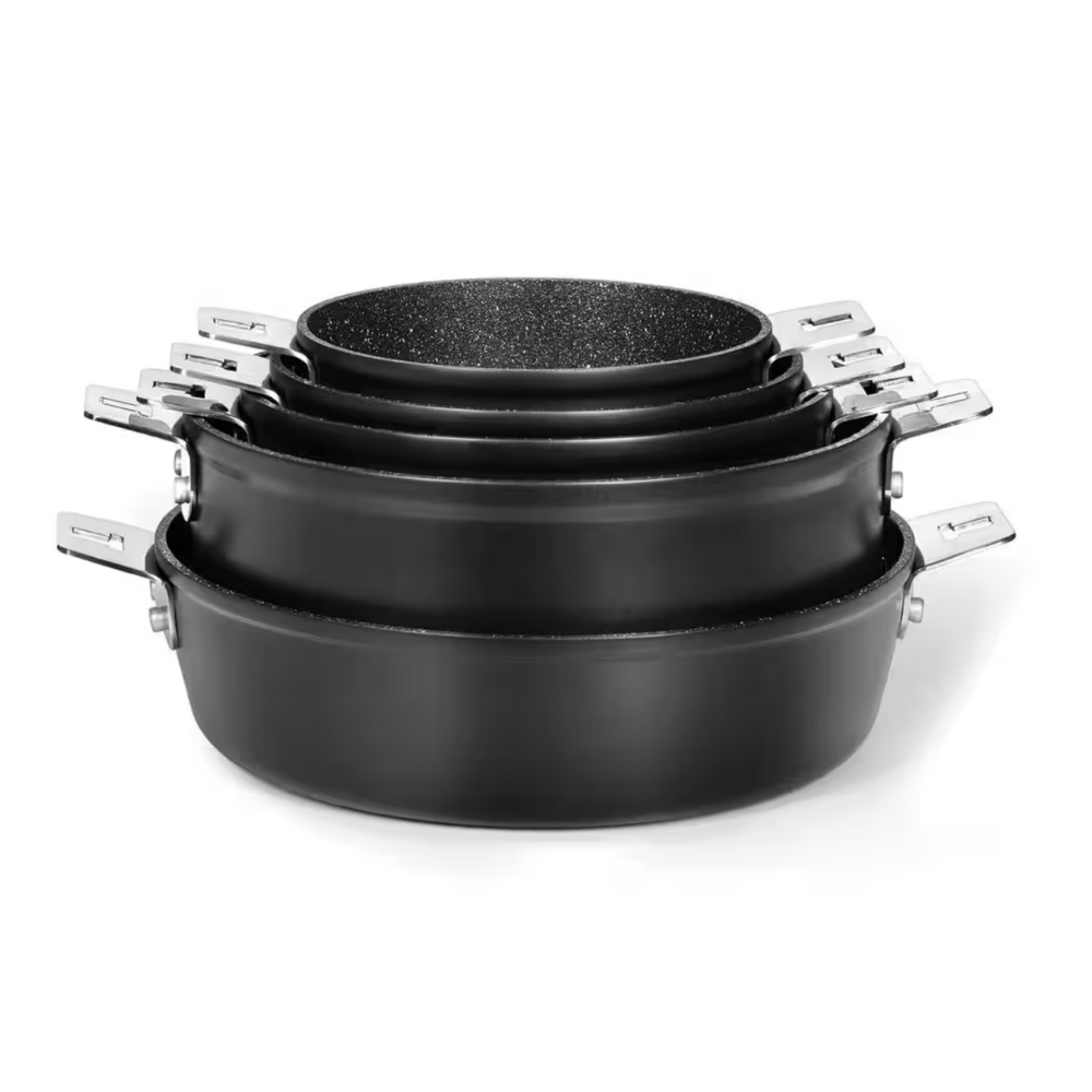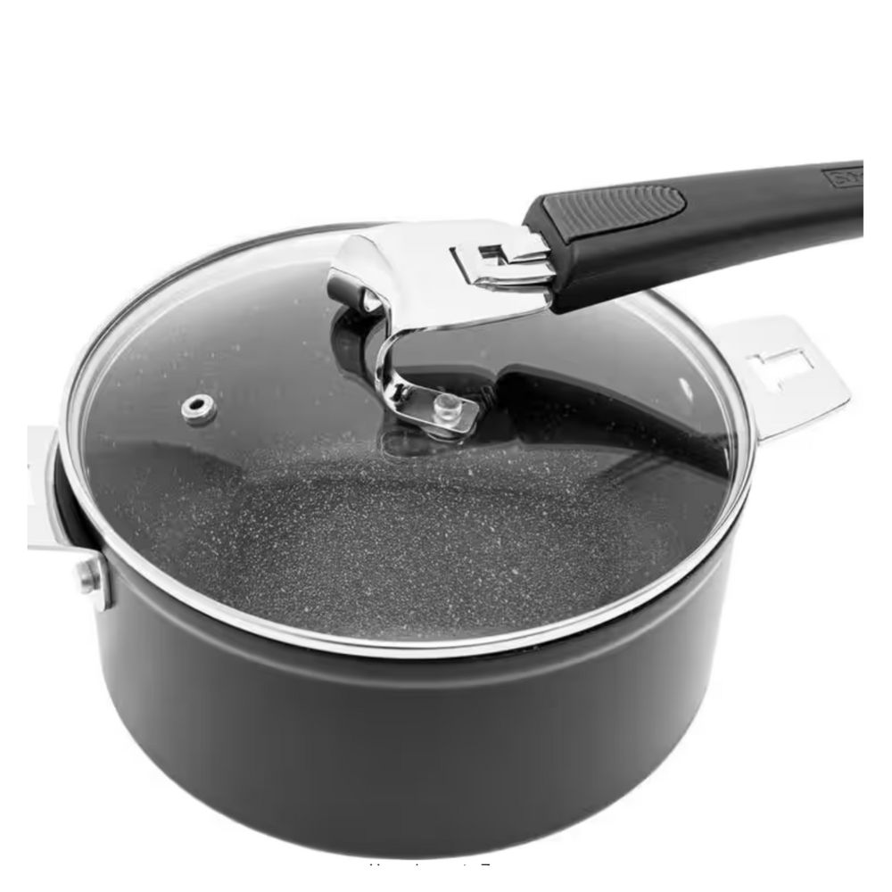 The Rock By Starfrit 12-Piece Aluminum Space-Saving Cookware Set with T-Lock Detachable Handles
