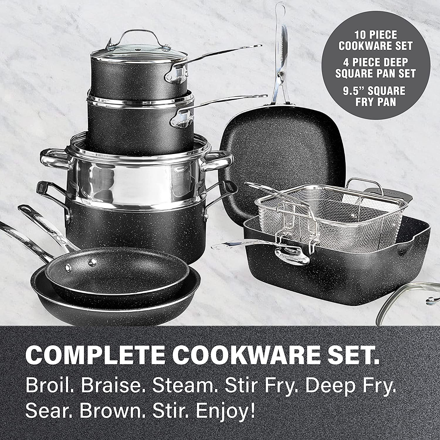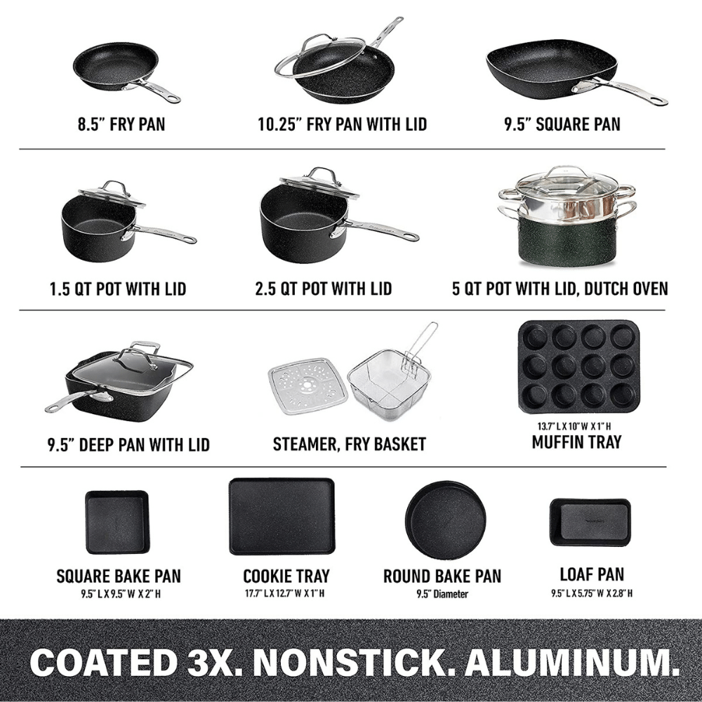 Granite Stone 20 Pcs Pots and Pans Set. Complete Cookware Bakeware Set
