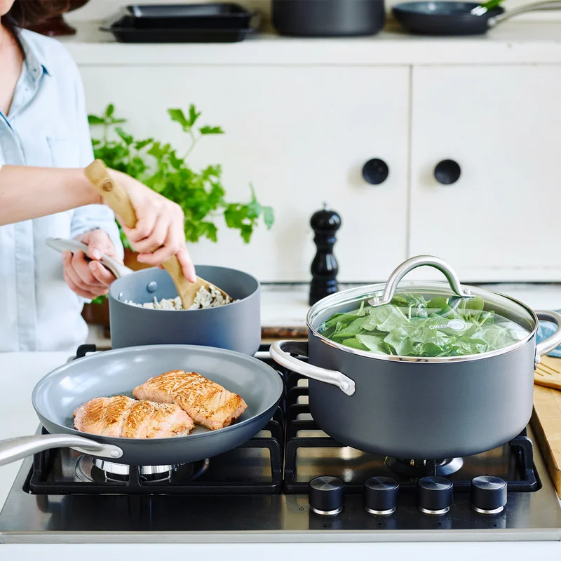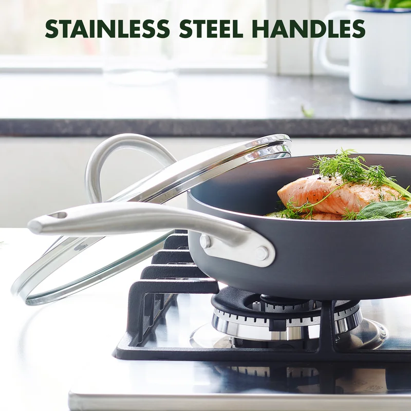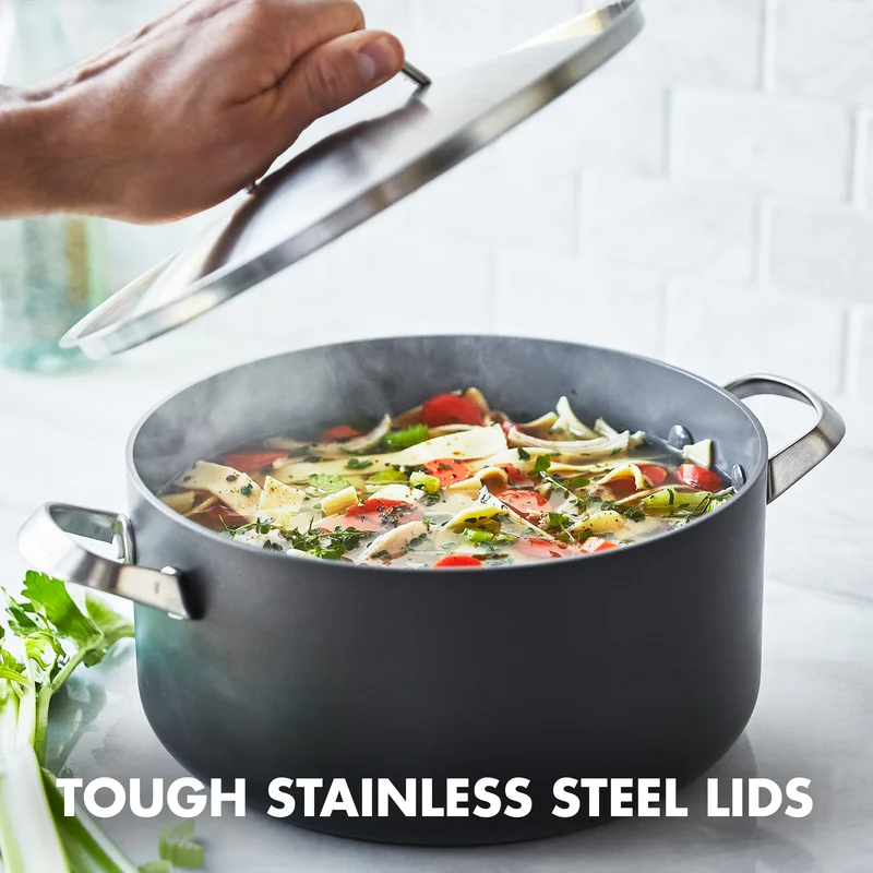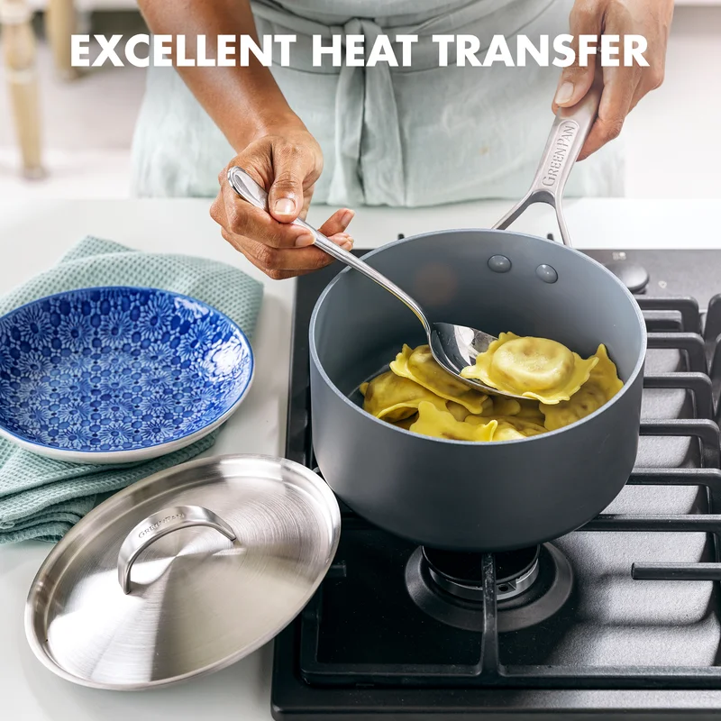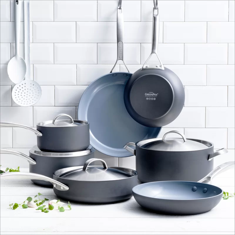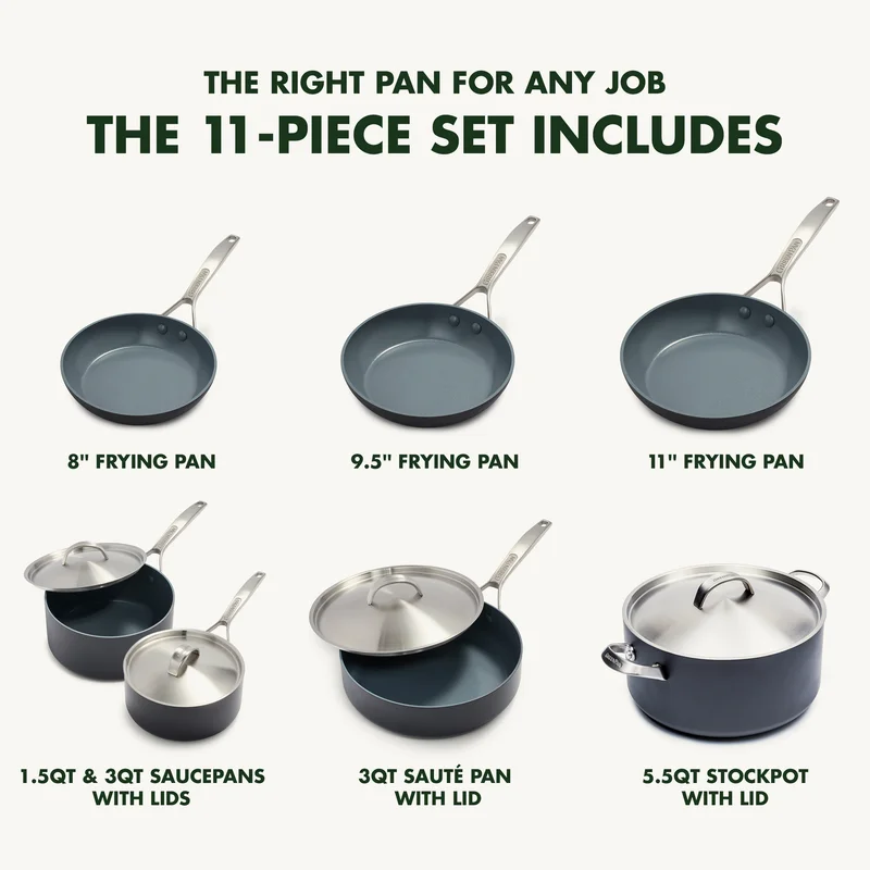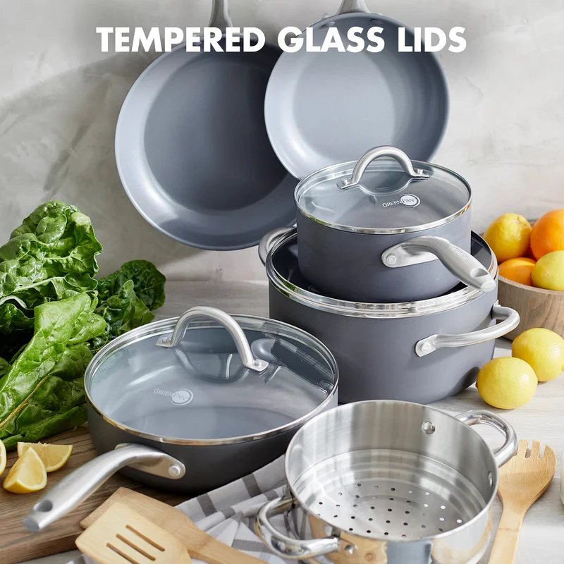GreenPan Paris Pro Hard Anodized Healthy Ceramic Nonstick. 11 Piece Cookware Pots and Pans Set with Stainless Steel Lids. PFAS-Free. Dishwasher Safe. Grey