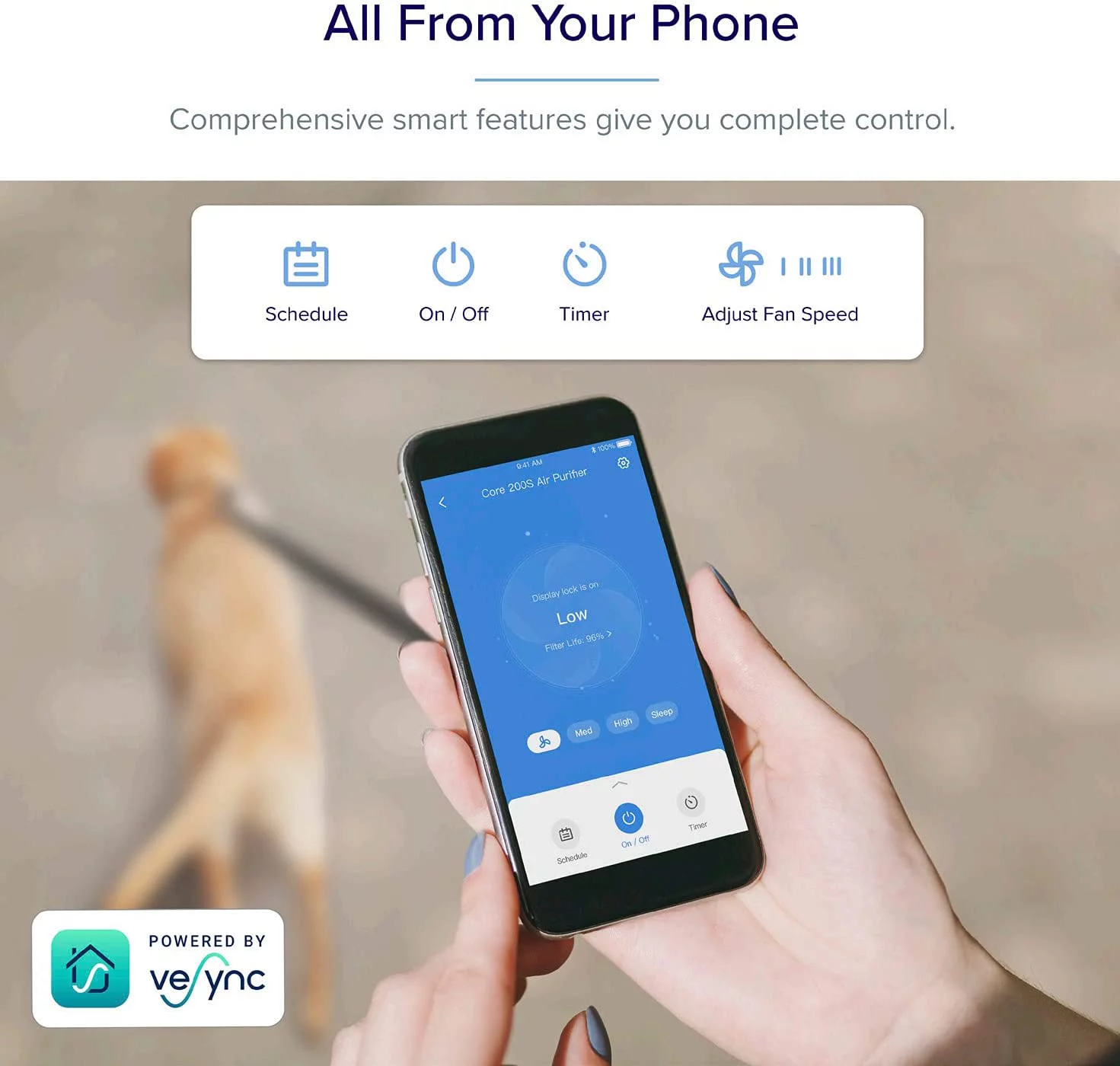 Levoit Air Purifier Core 200S. True HEPA for Allergy. Smart Voice Control. Gray