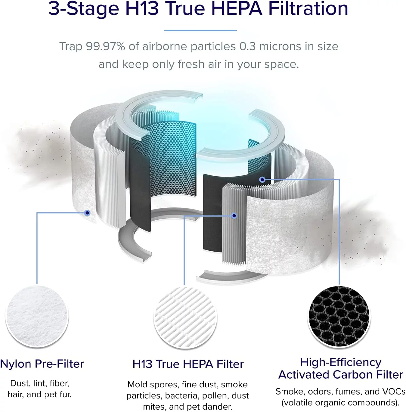 Vremi Premium Air Purifier with True HEPA Filter - Purifies Air in Medium to Large Rooms and Spaces