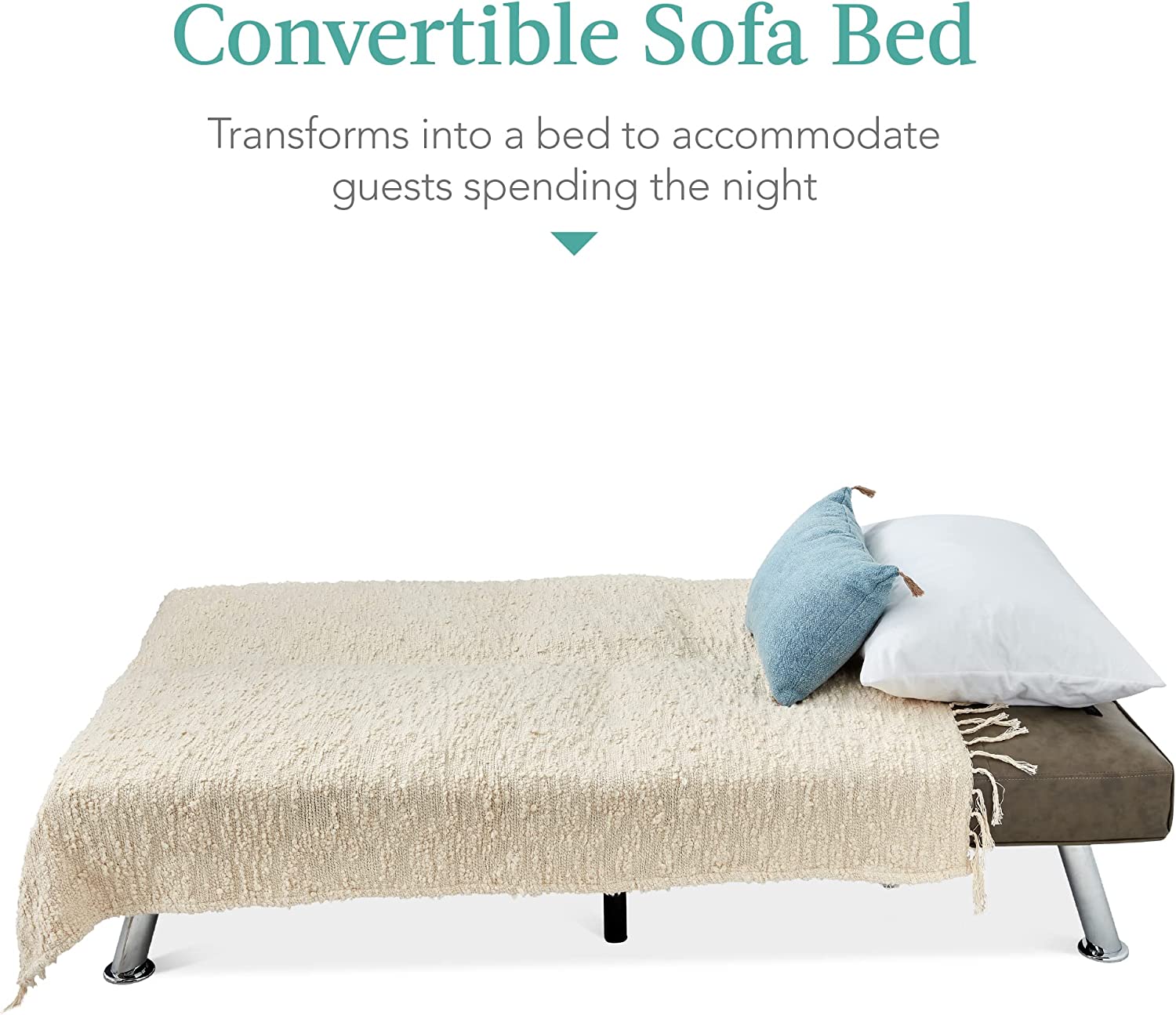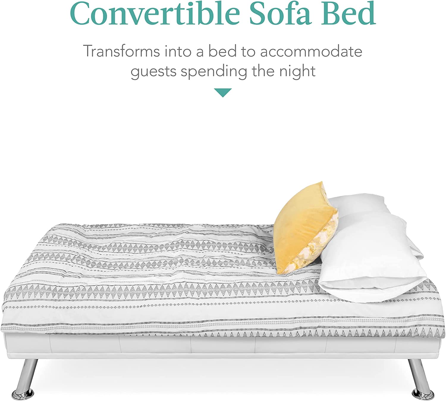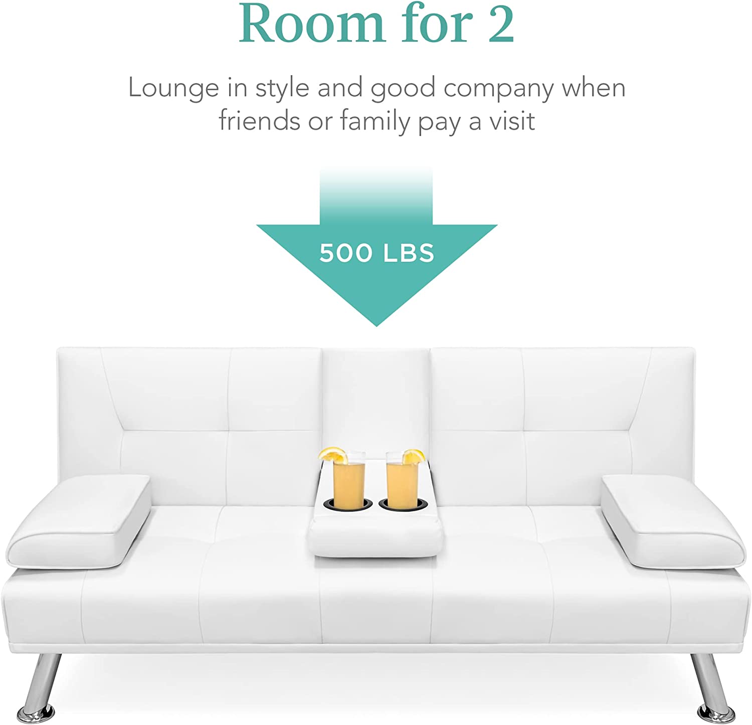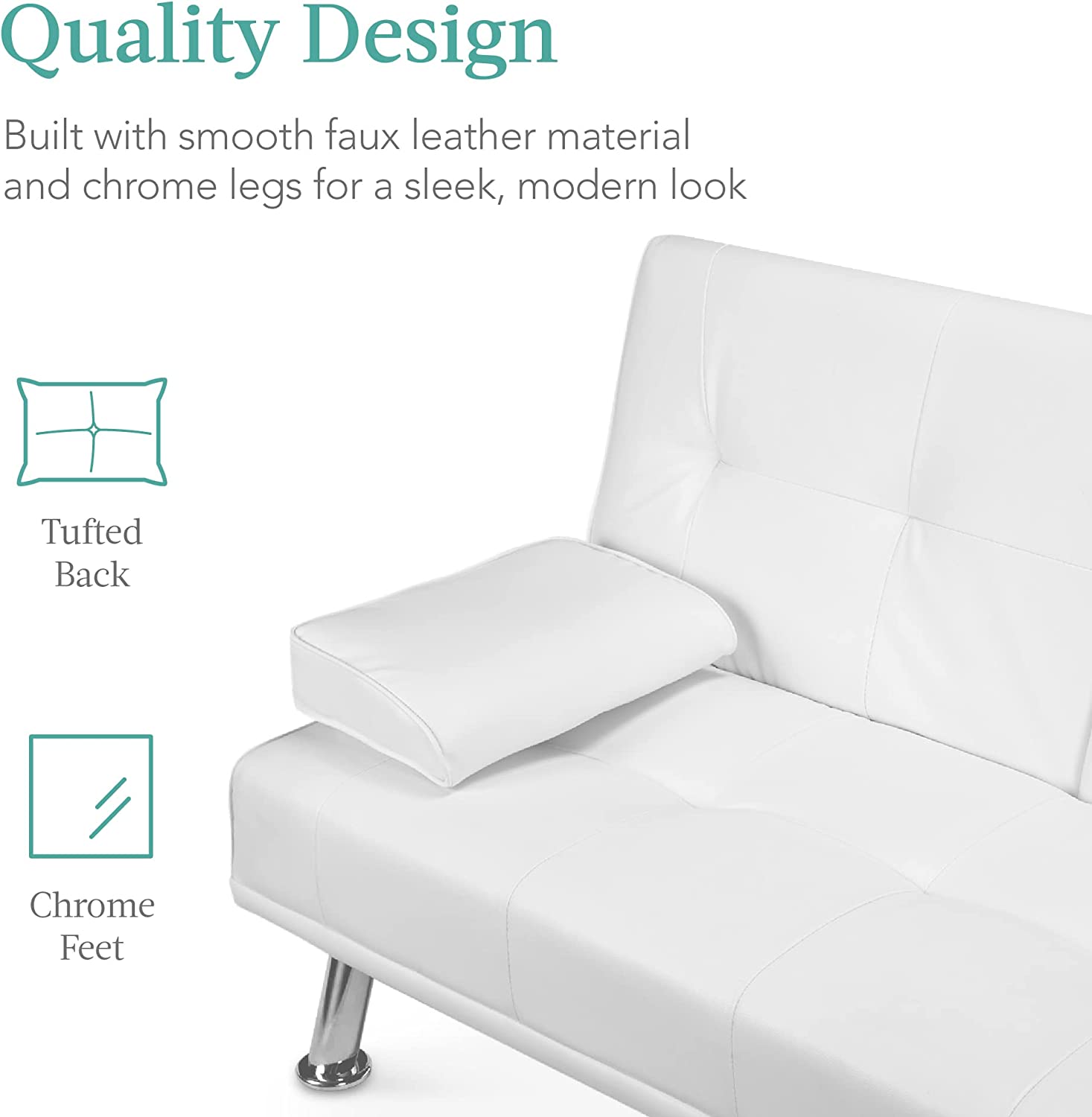 Best Choice Products Faux Leather Upholstered Modern Convertible Folding Futon Sofa Bed for Compact Living Space. Apartment. Dorm. Bonus Room w/Removable Armrests. Metal Legs. 2 Cupholders - White