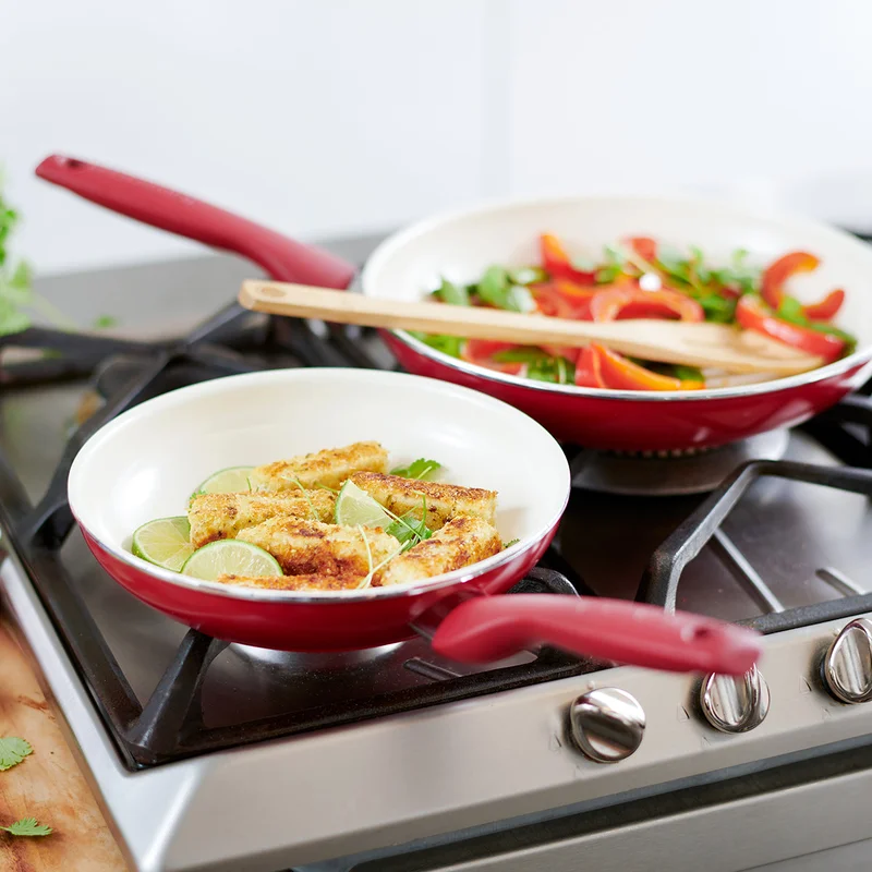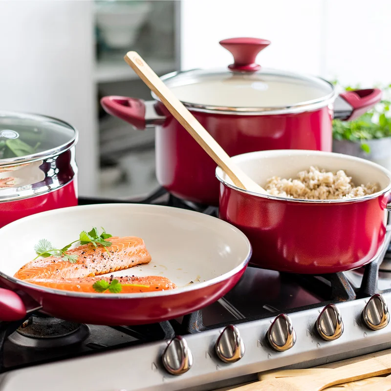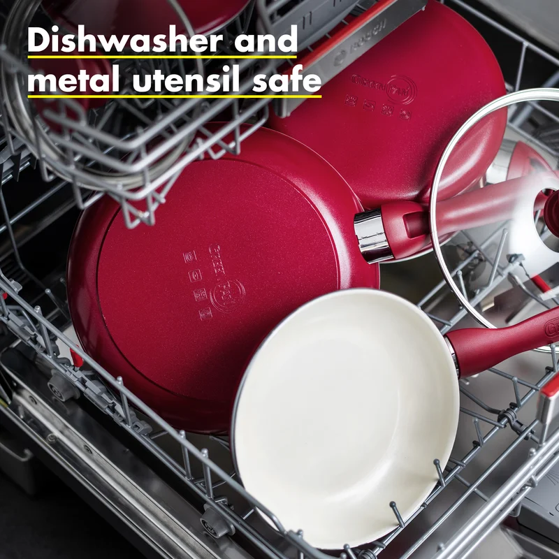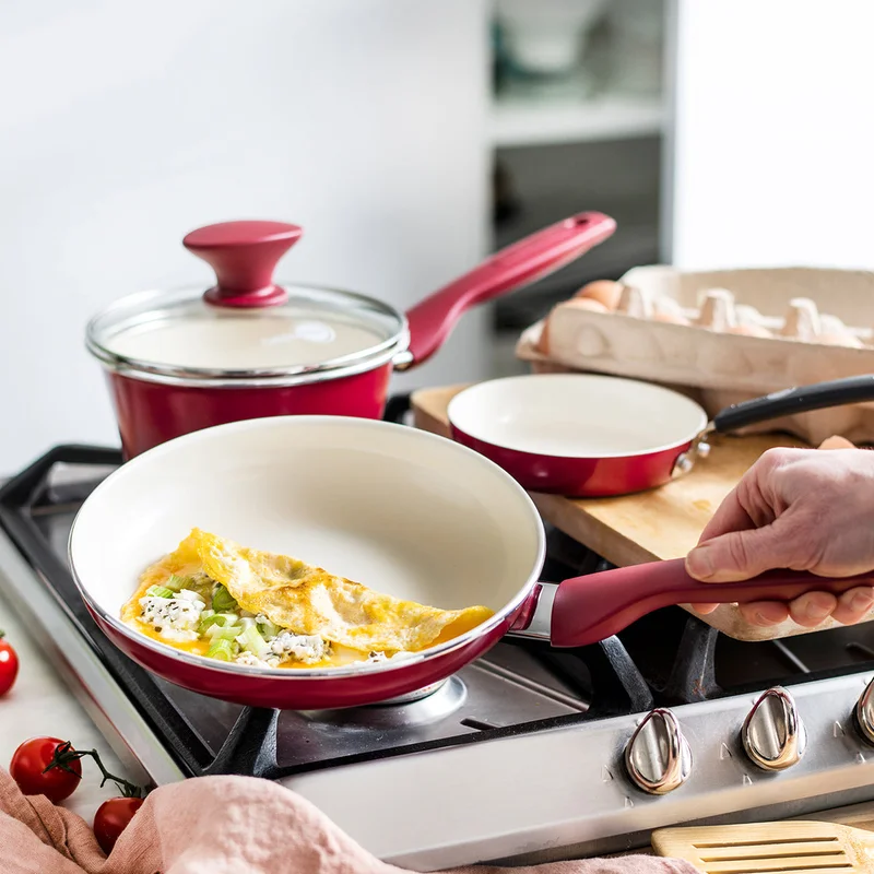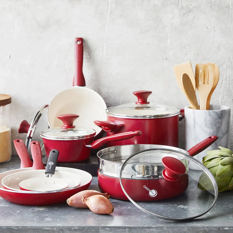 GreenPan CC002330-001 Rio Healthy Ceramic Nonstick 16 Piece Cookware Pots and Pans in Set Red