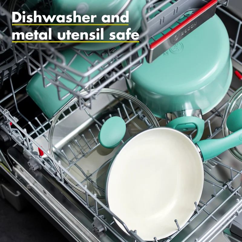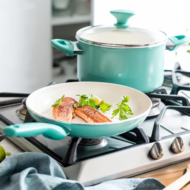 GreenPan CC002482-001 Rio Healthy Ceramic Nonstick 16 Piece Cookware Pots and Pans Set in Turquoise