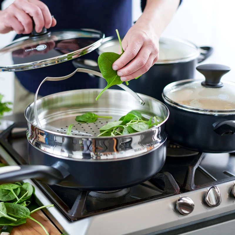 GreenPan CC002639-001 Rio 16-Piece Healthy Ceramic Nonstick Cookware Pots and Pans Set in Black