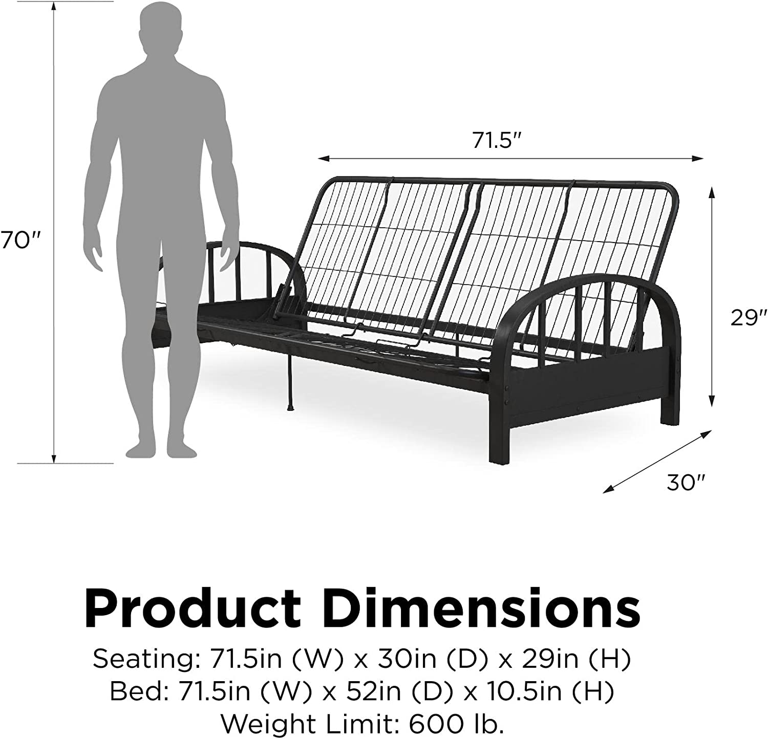 DHP Aiden Metal Futon Frame. Black Large