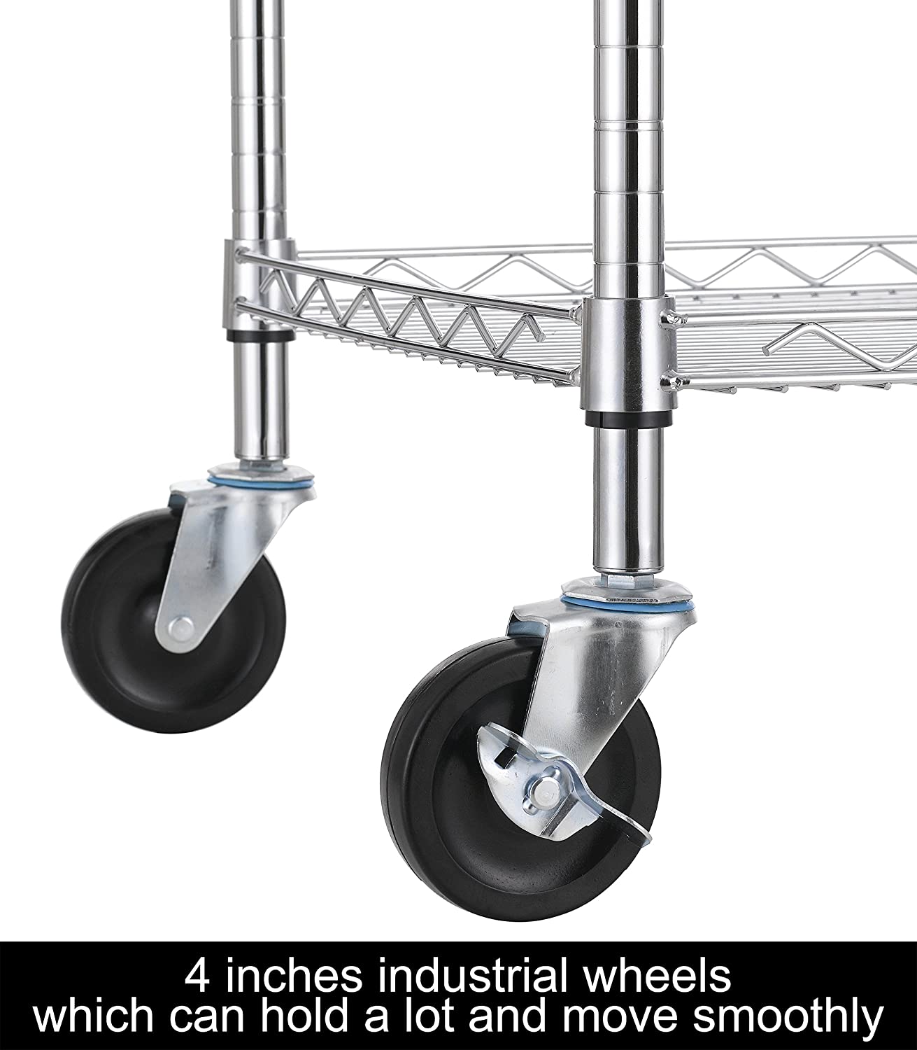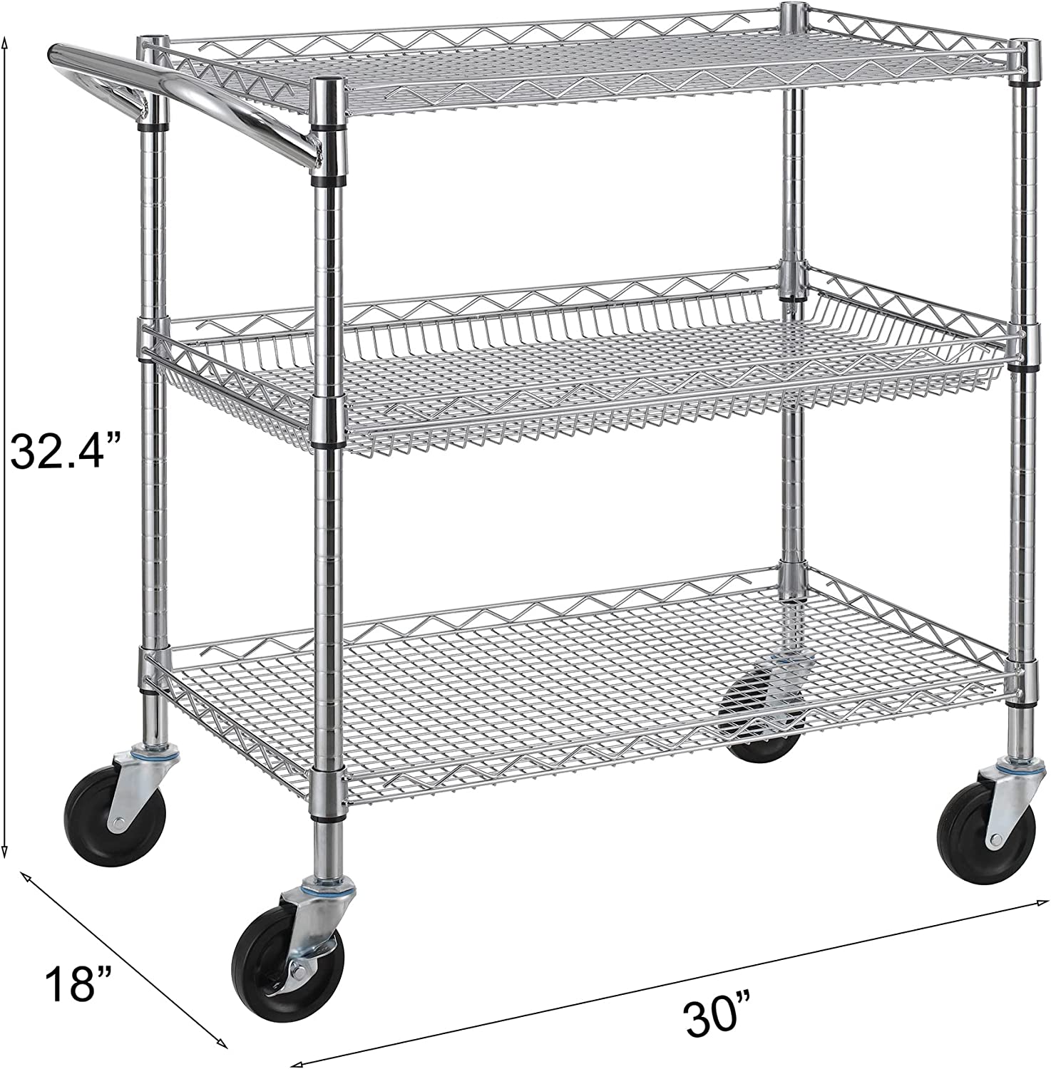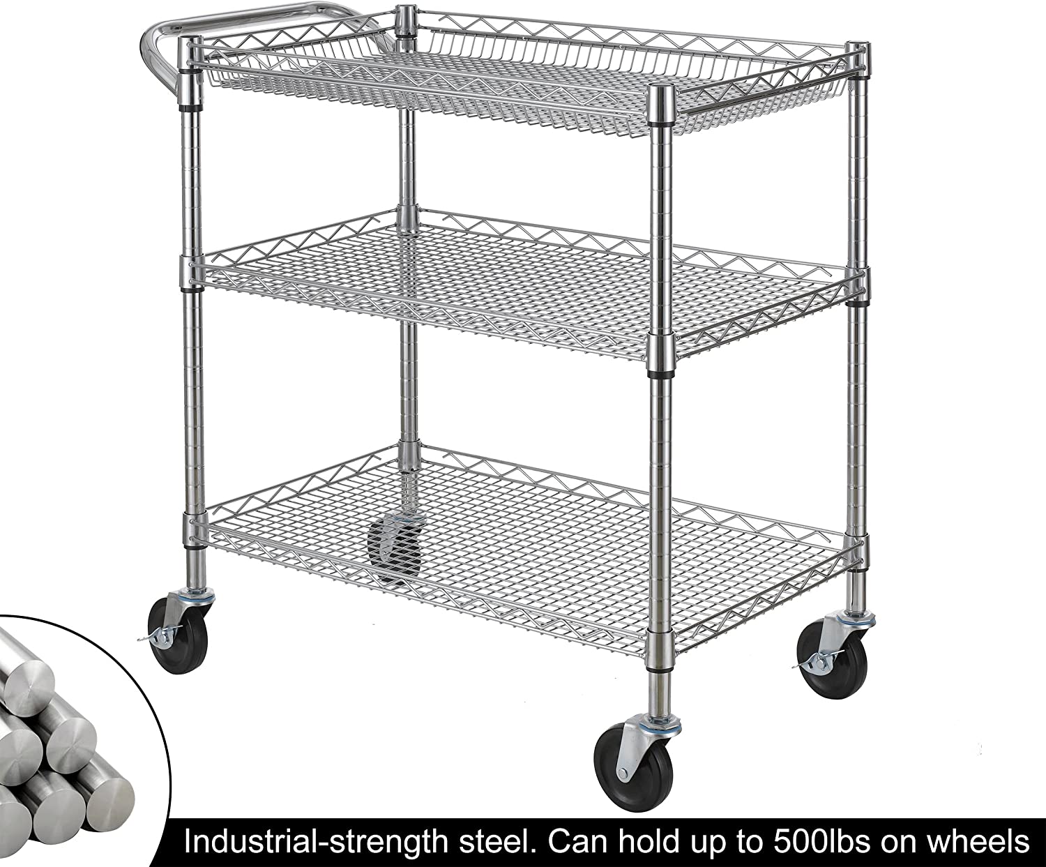 Finnhomy 3 Tier Heavy Duty Commercial Grade Utility Cart. Wire Rolling Cart with Handle Bar. Steel Service Cart with Wheels. Utility Shelf Plant Display Shelf Food Storage Trolley. NSF Listed