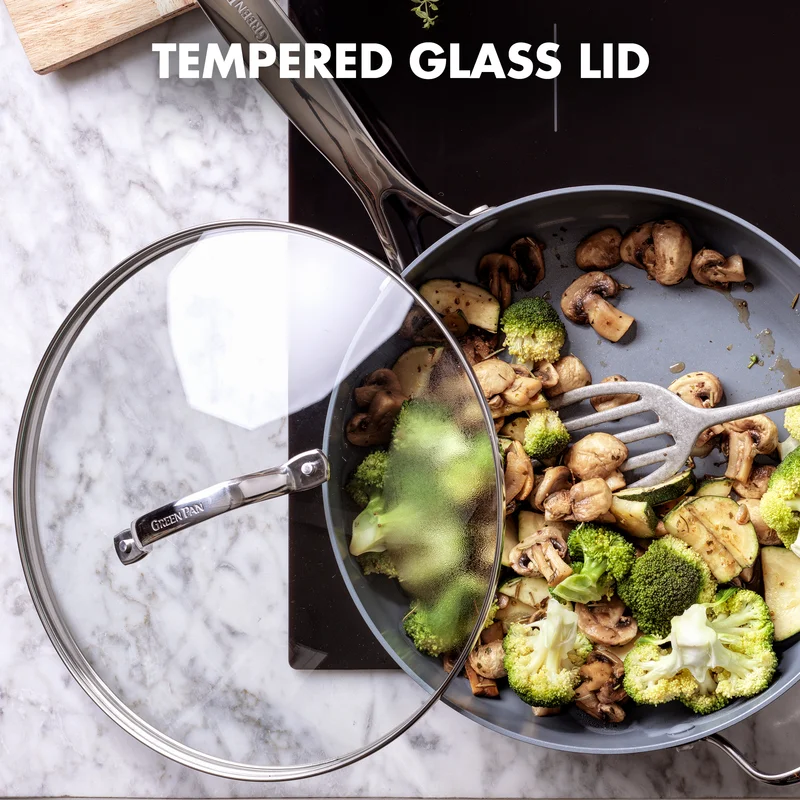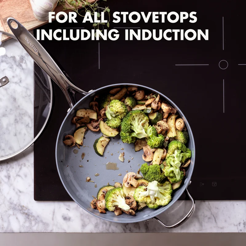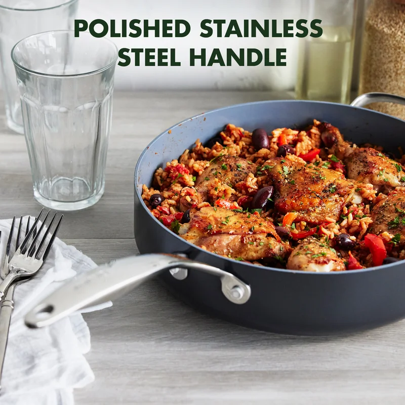 GreenPan Valencia Pro Hard Anodized Healthy Ceramic Nonstick 4.5QT Saute Pan Jumbo Cooker with Lid. PFAS-Free. Induction. Dishwasher Safe. Oven Safe. Gray