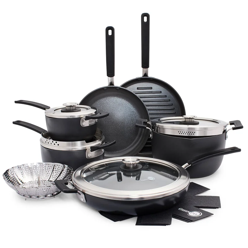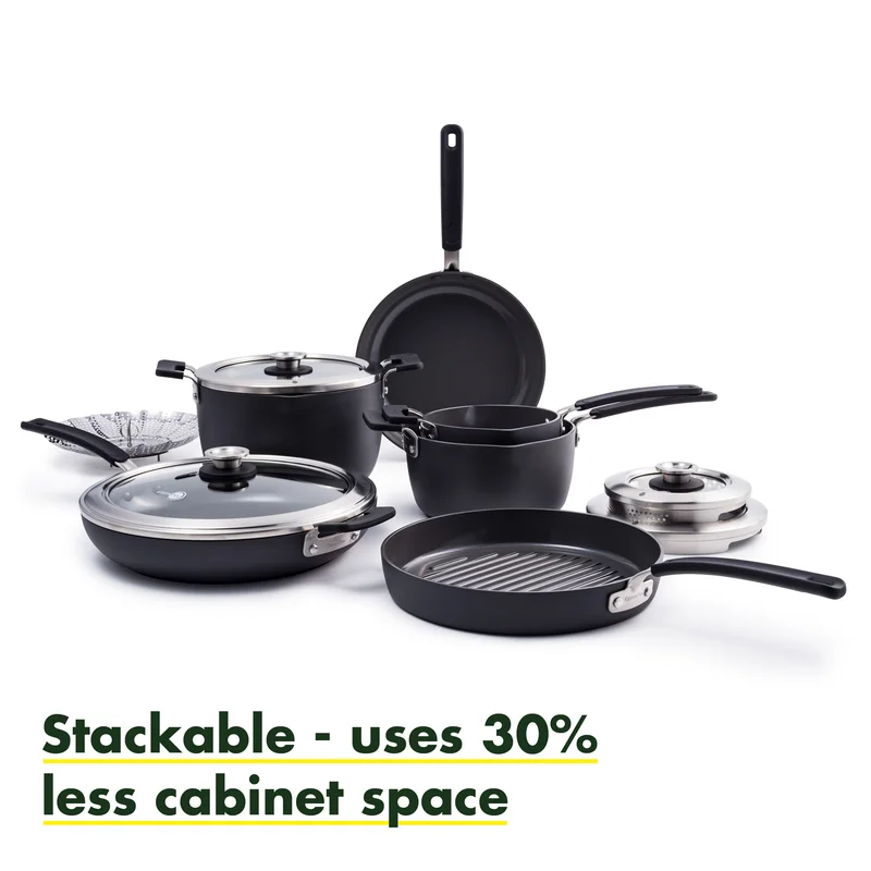 GreenPan Levels Stackable Hard Anodized Healthy Ceramic Nonstick 11 Piece Cookware Pots and Pans Set. PFAS-Free. Dishwasher Safe. Black