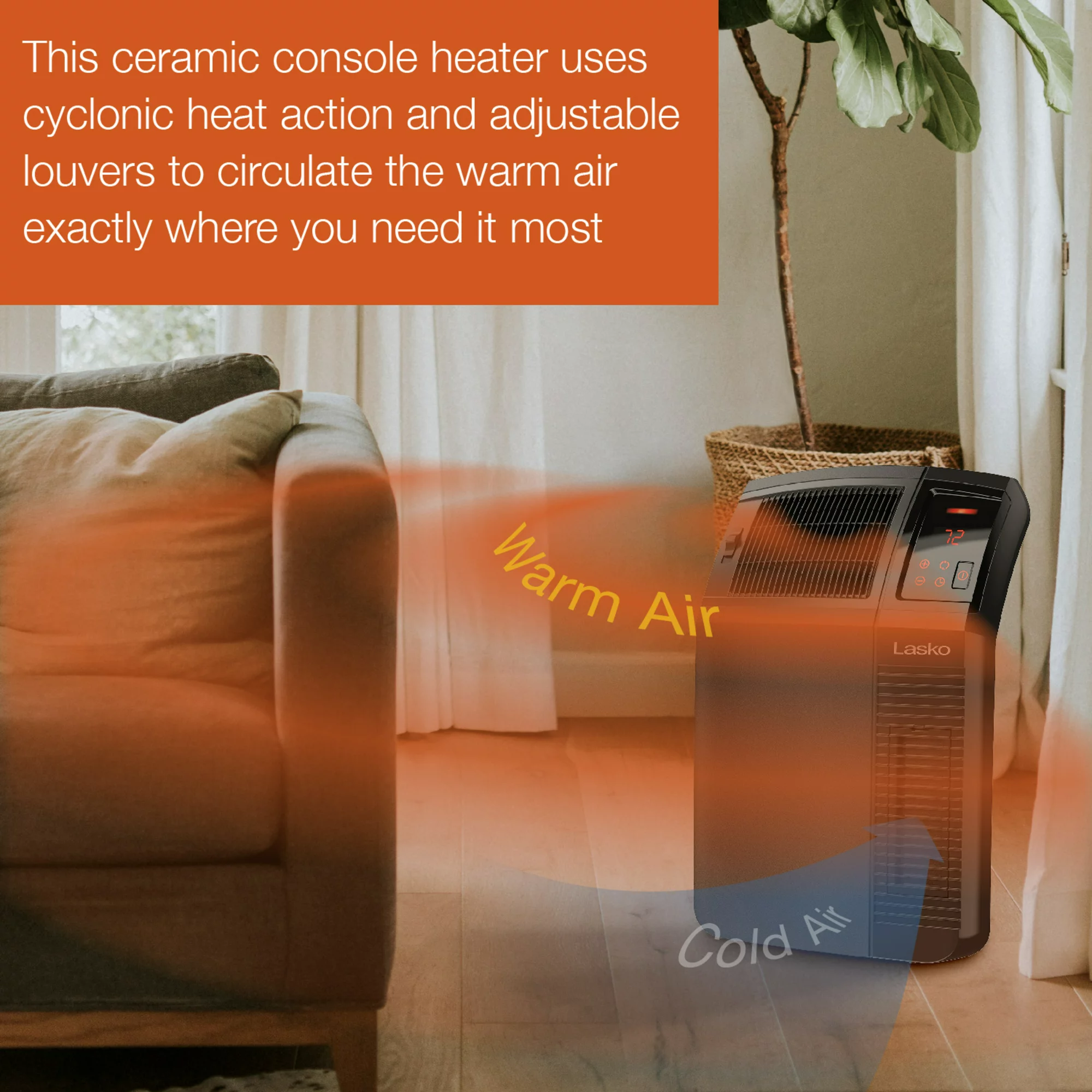 Lasko 1500W Electric Cyclonic Ceramic Room Space Heater with Timer. CC24920. Black
