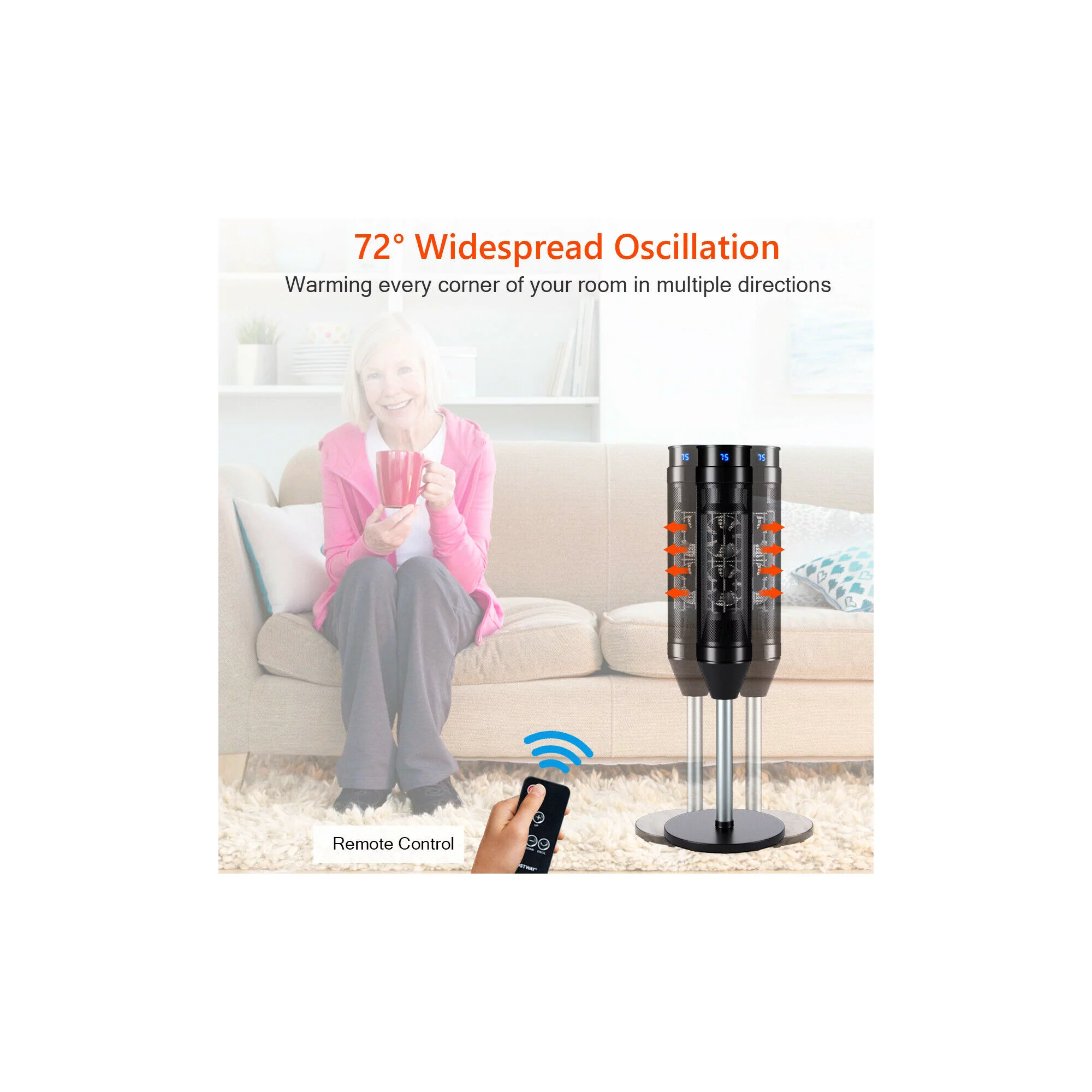 Costway 1500W Portable Oscillating Ceramic Pedestal Heater w/ Timer Remote Control Room