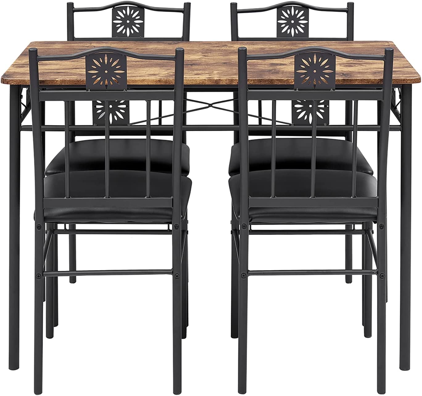 VECELO Kitchen Dining Room Table Sets for 4. 5 Piece Metal and Wood Rectangular Breakfast Nook. Dinette with Chairs. Retro-Brown