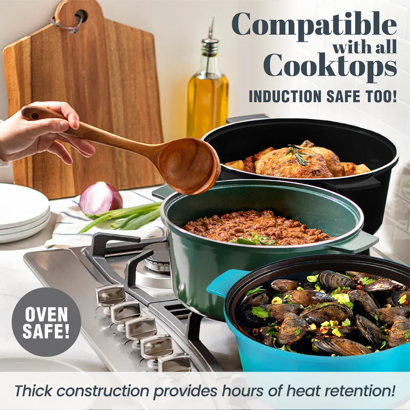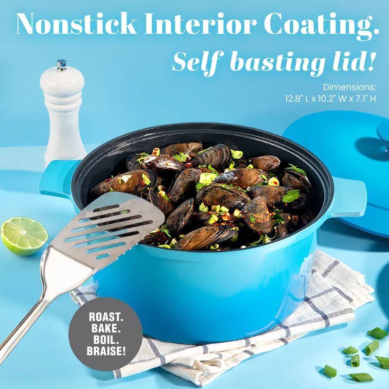 Granitestone 7501 5 qt. Round Aluminum Ultra-Durable Nonstick Mineral and Diamond Coating Dutch Oven in Blue