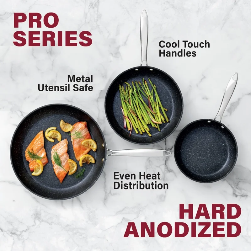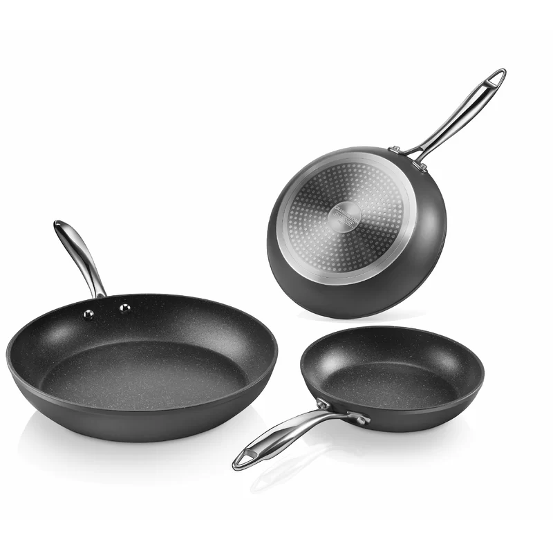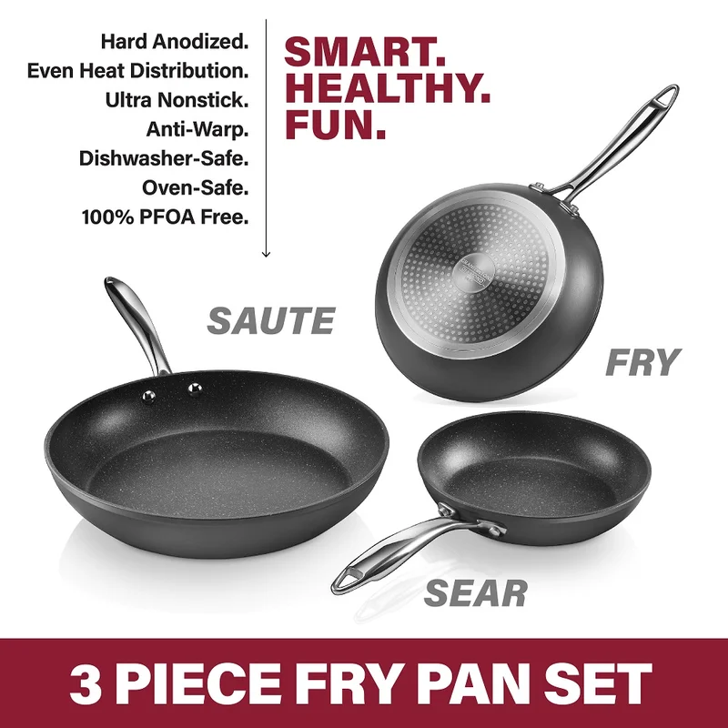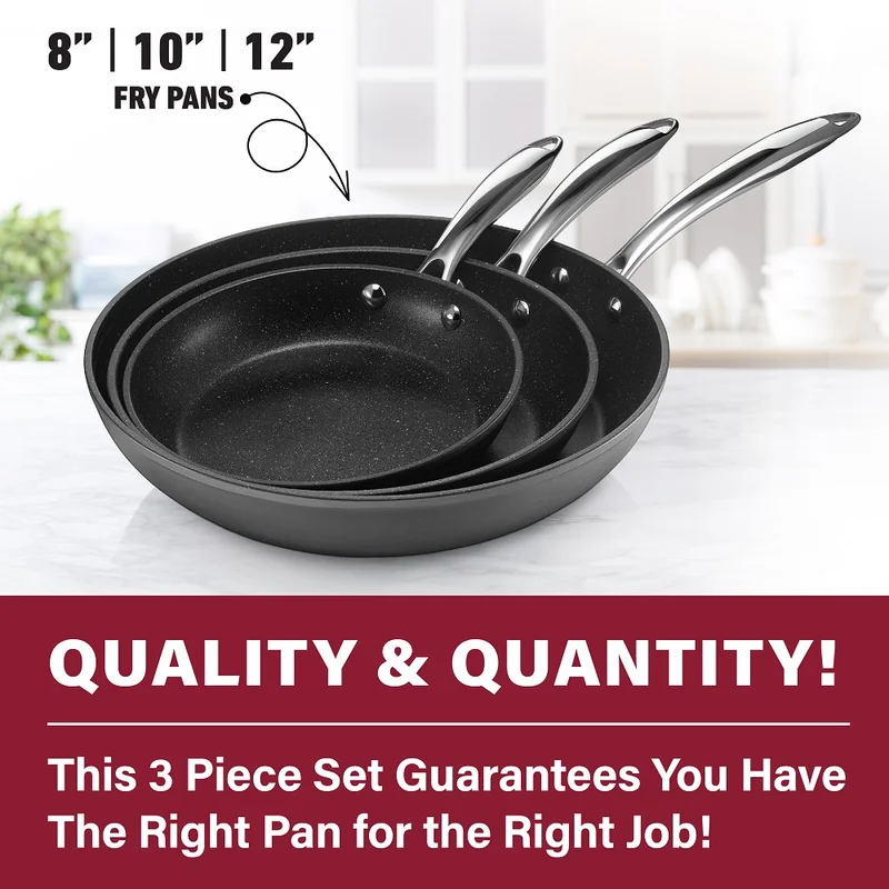GRANITESTONE 7197 Professional 3-Piece Aluminum Ultra-Nonstick Hard Anodized Diamond Infused Fry Pan Set (8 in.. 10 in.. 12 in.)