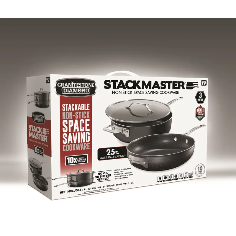 GRANITESTONE 2654 StackMaster 3-Piece Aluminum Non-Stick Diamond Infused Cookware Set
