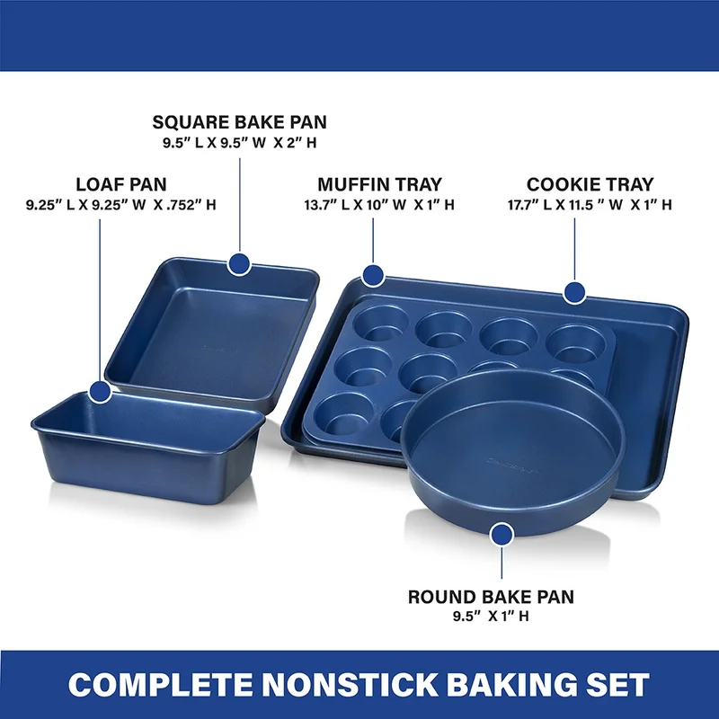 GRANITESTONE 7202 Pro Classic Blue 5-Piece Titanium and Diamond Infused Non-Stick Bakeware Set