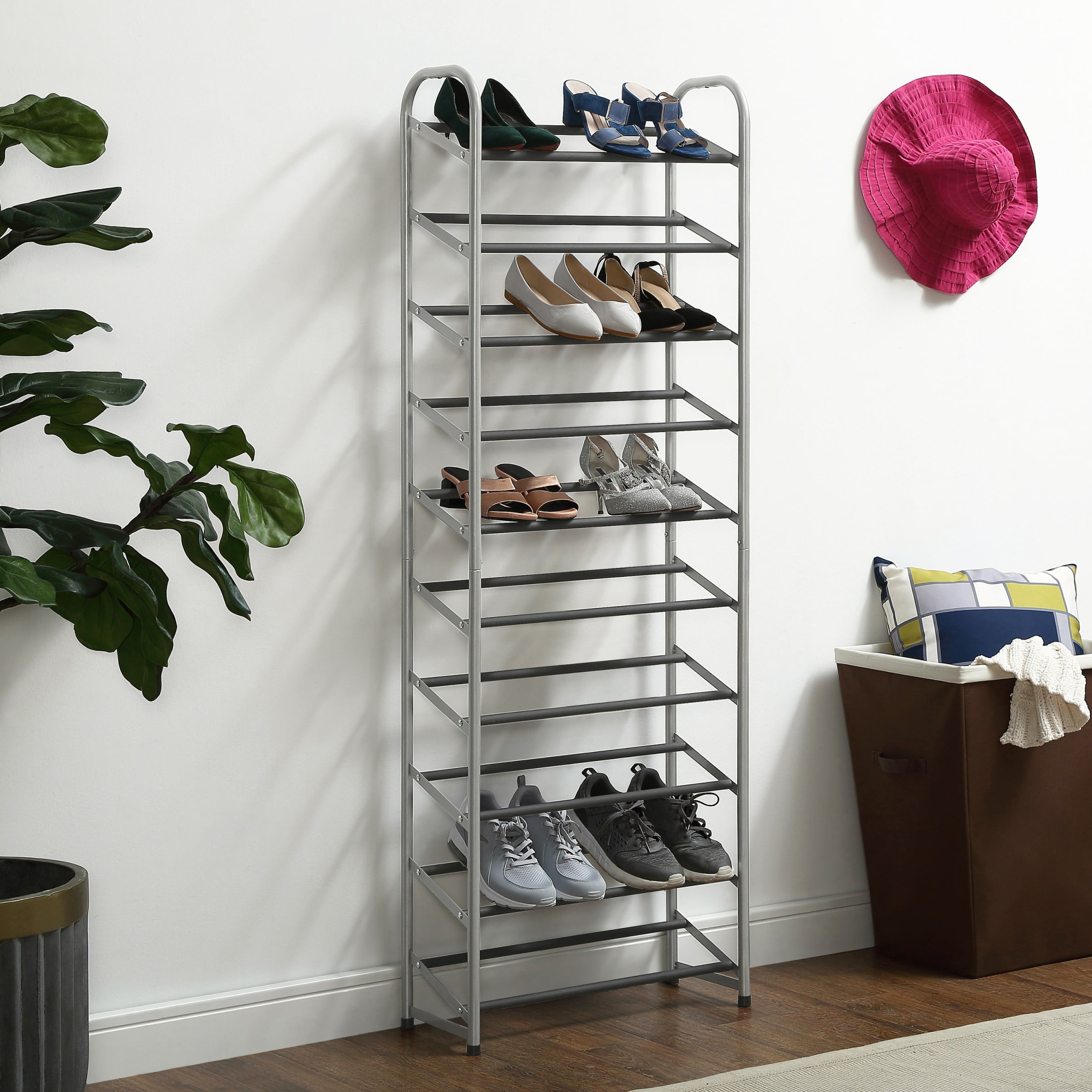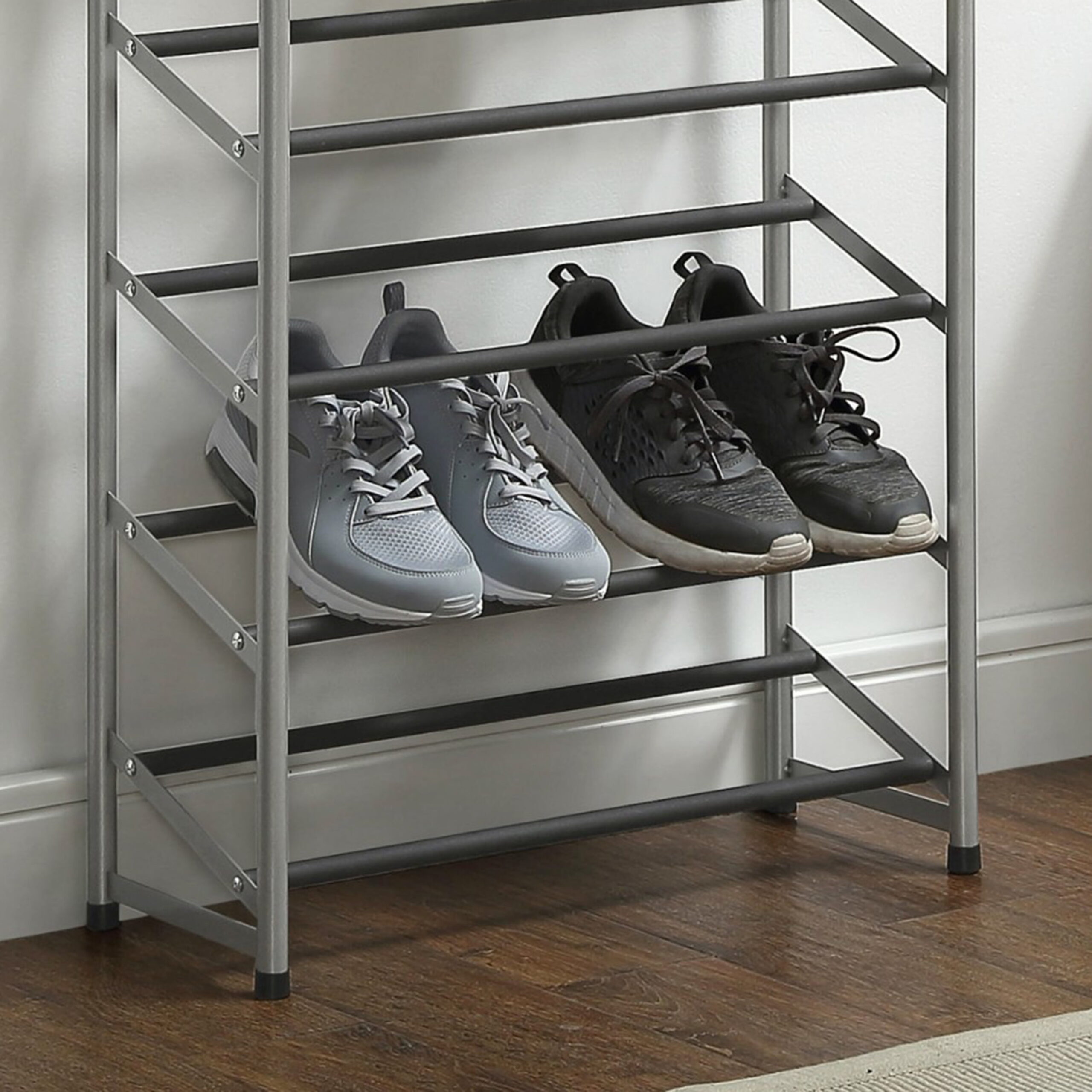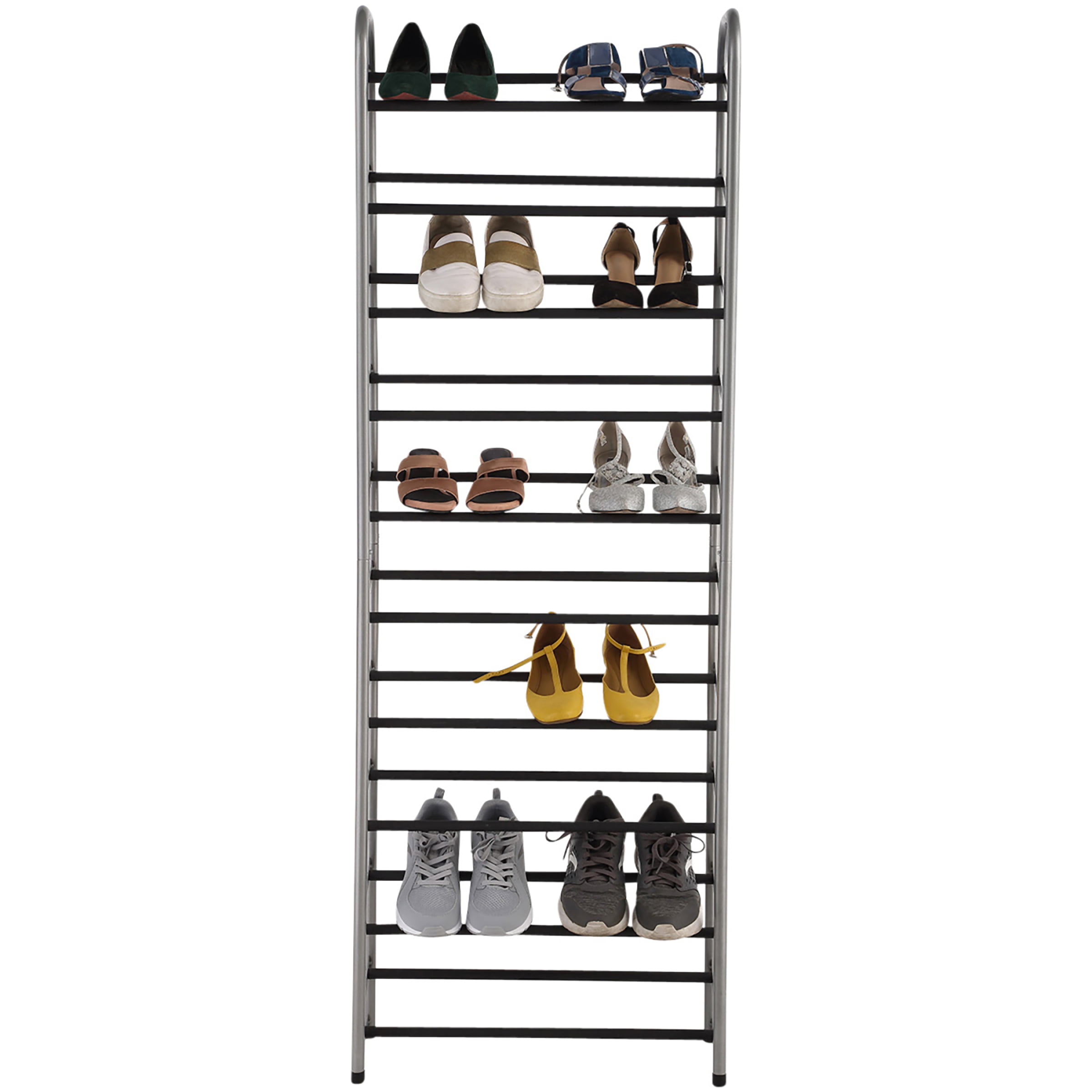 Mainstays 10-Tier Shoe Rack. Powder Coated Black and Silver Finish. 30 Pairs