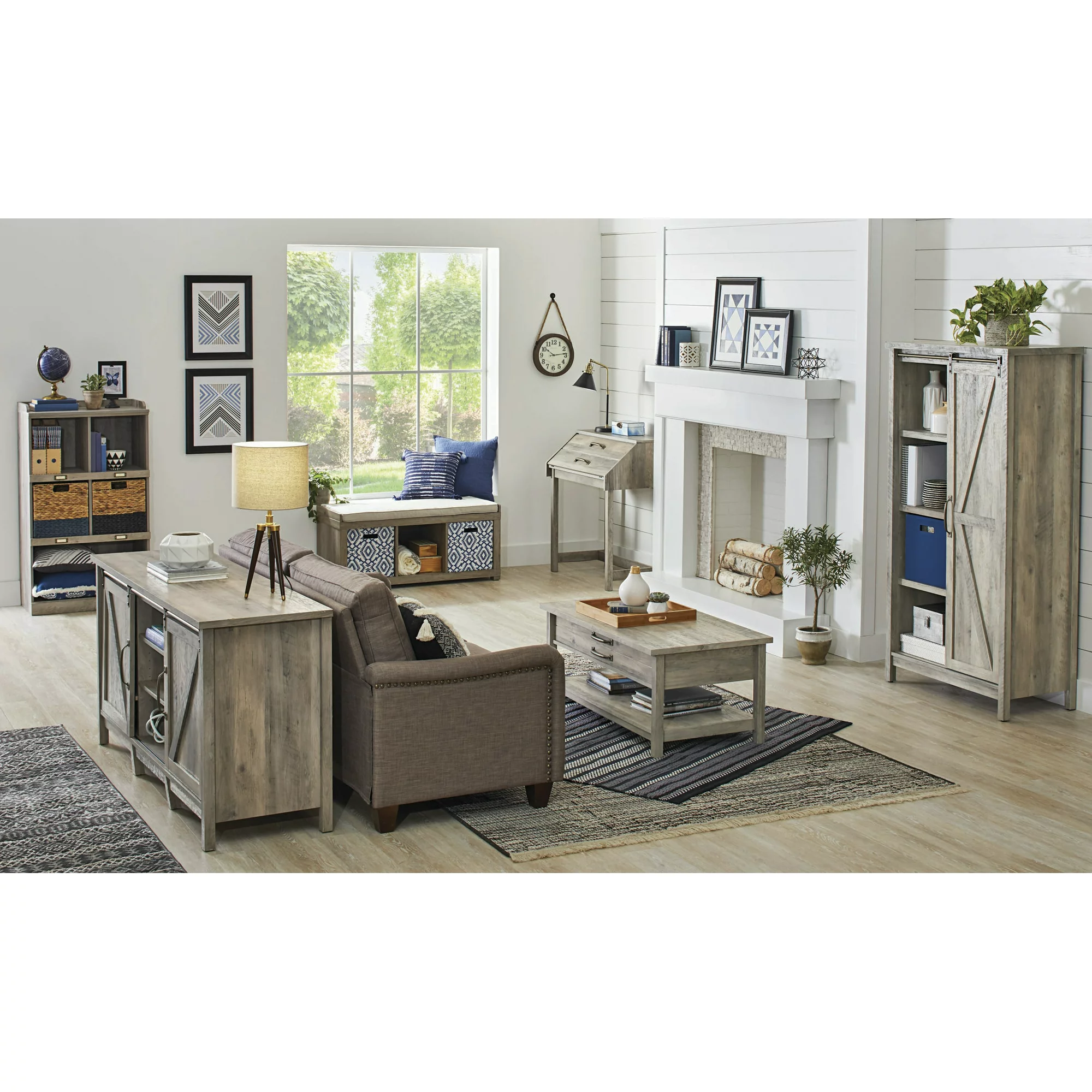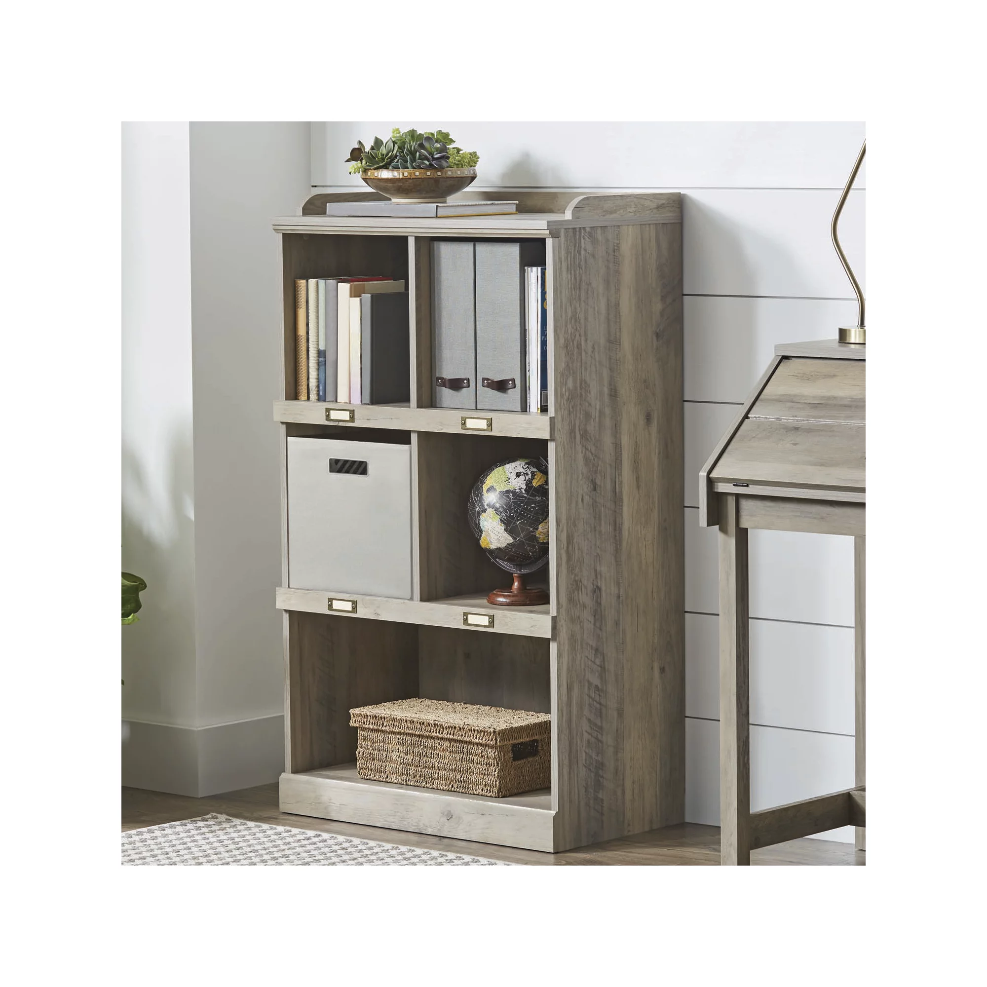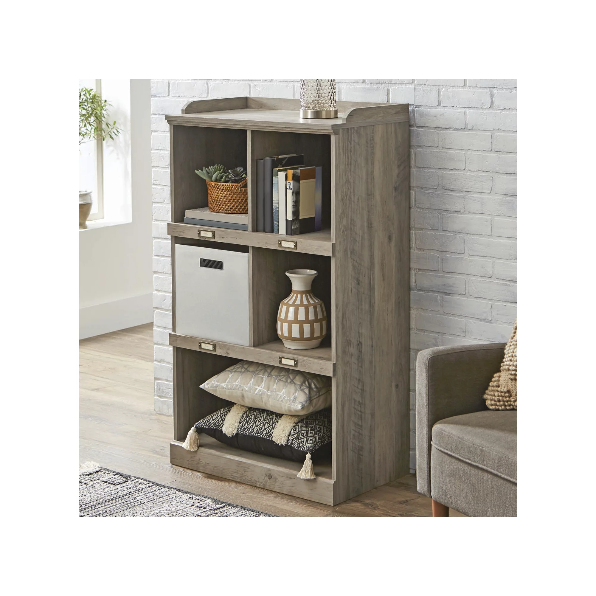 Better Homes & Gardens Modern Farmhouse 5-Cube Organizer Bookcase with Name Plates. Rustic Gray Finish