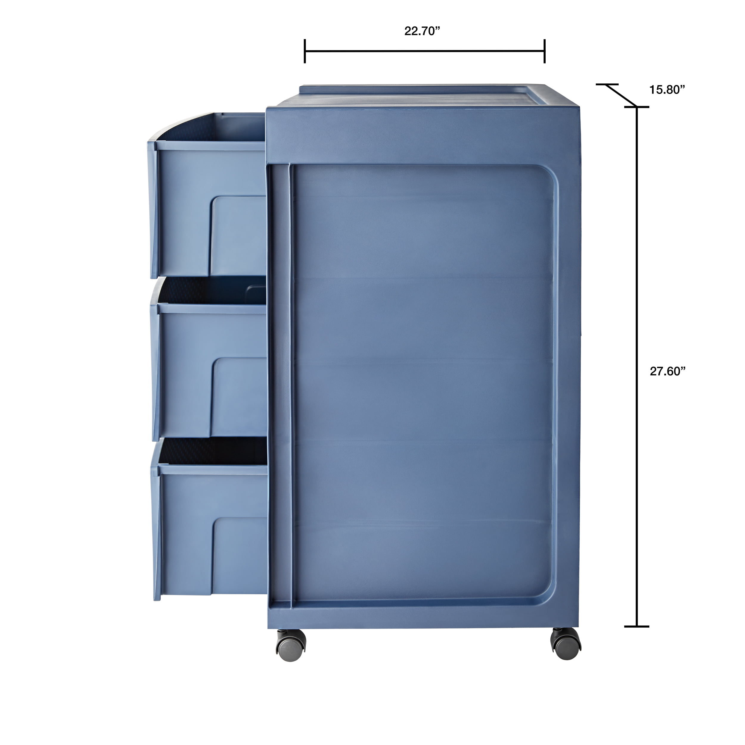Mainstays 3 Drawer Wide Diamond Plastic Storage Cart. Cove Blue