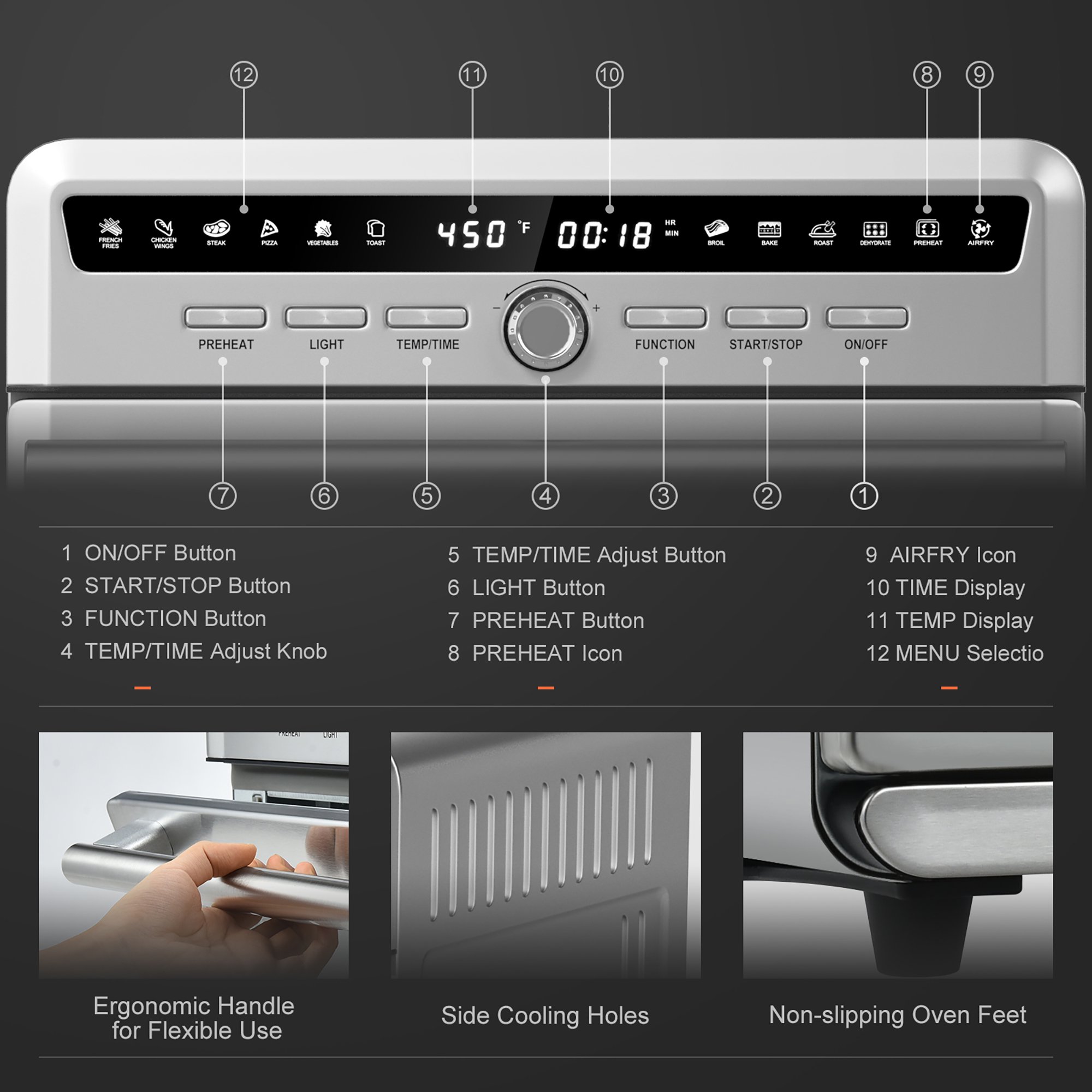 Costway 26.4 QT 10-in-1 Air Fryer Toaster Oven Dehydrate Bake 1800W