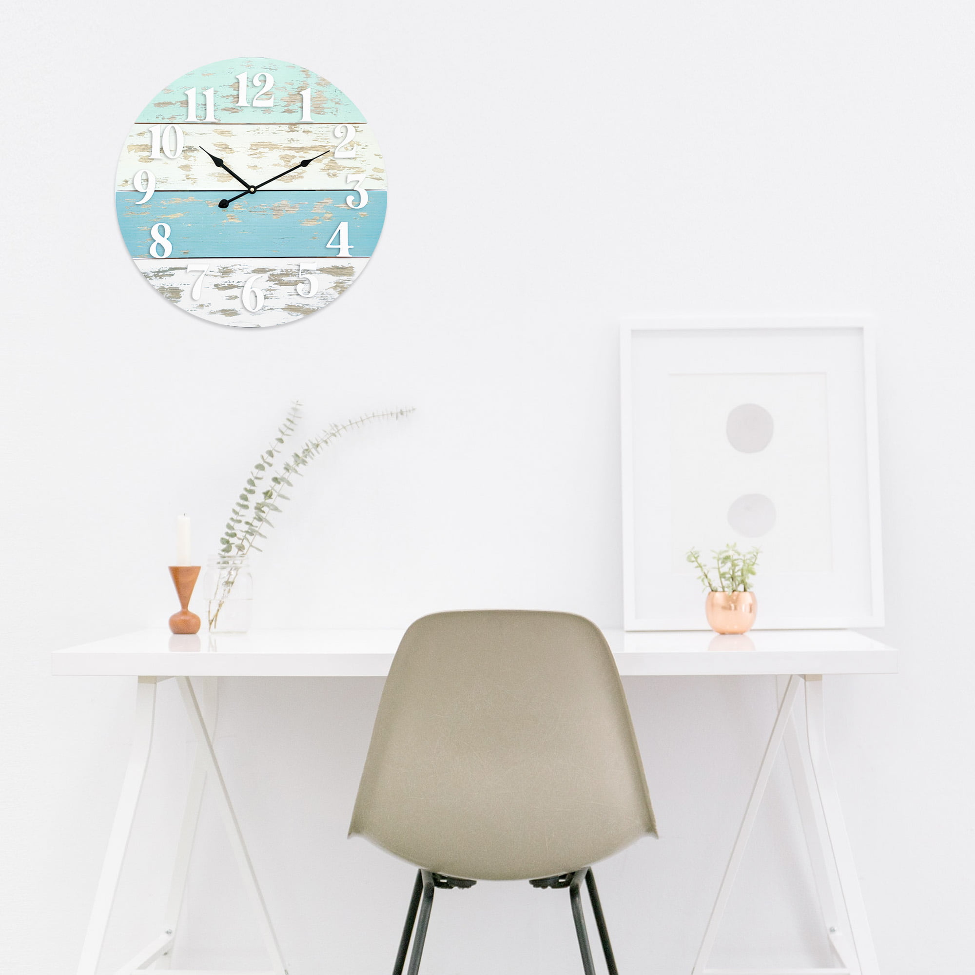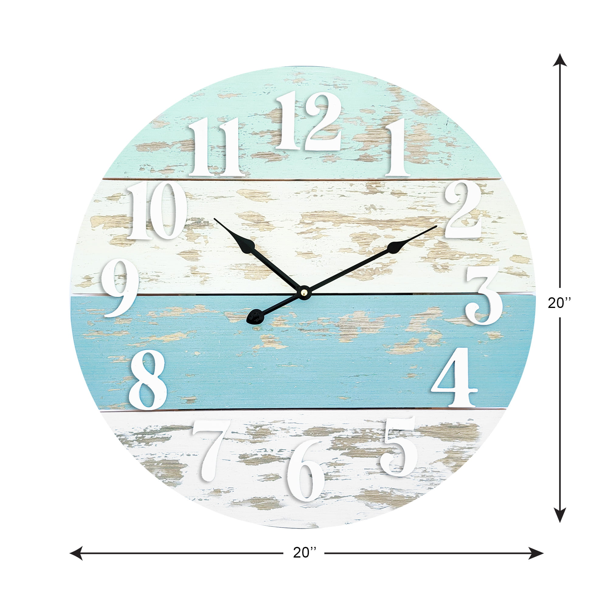 Mainstays 20″ Farmhouse Coastal Blue Wood Round Wall Clock