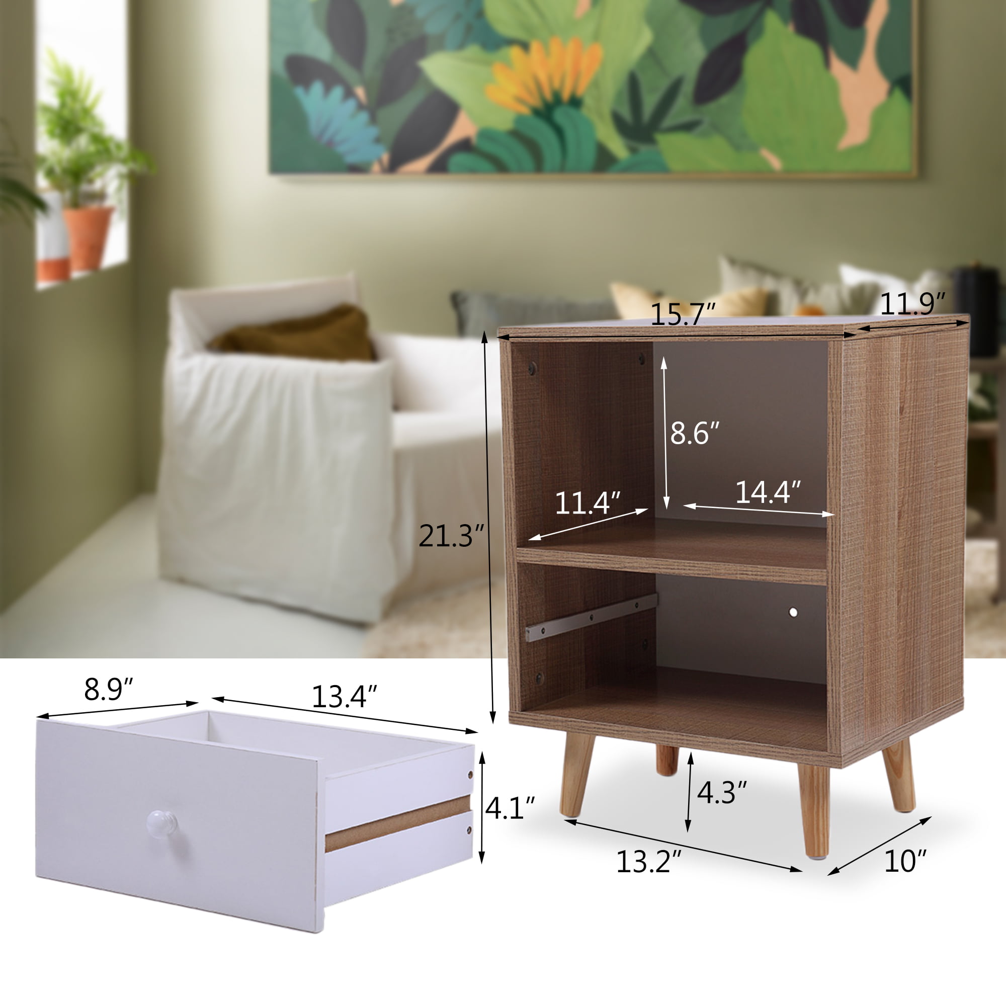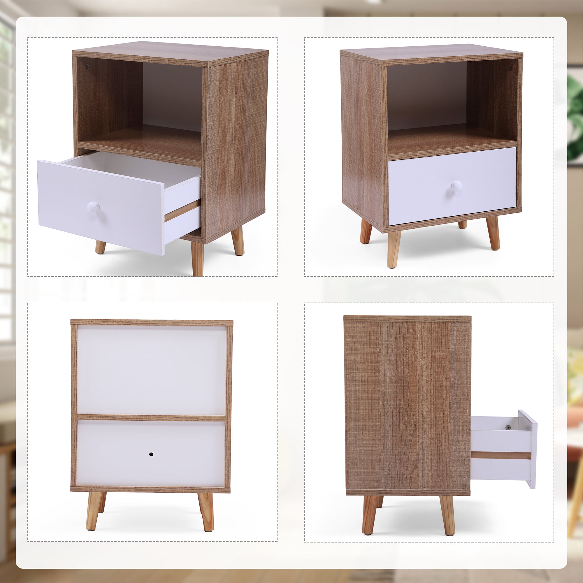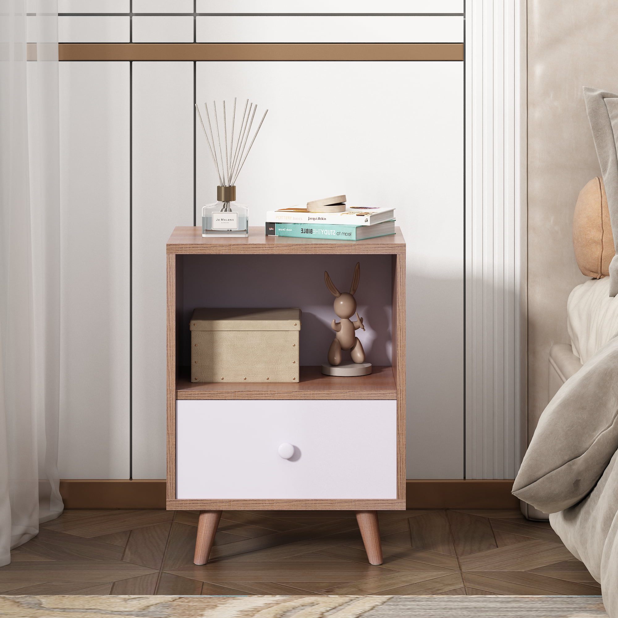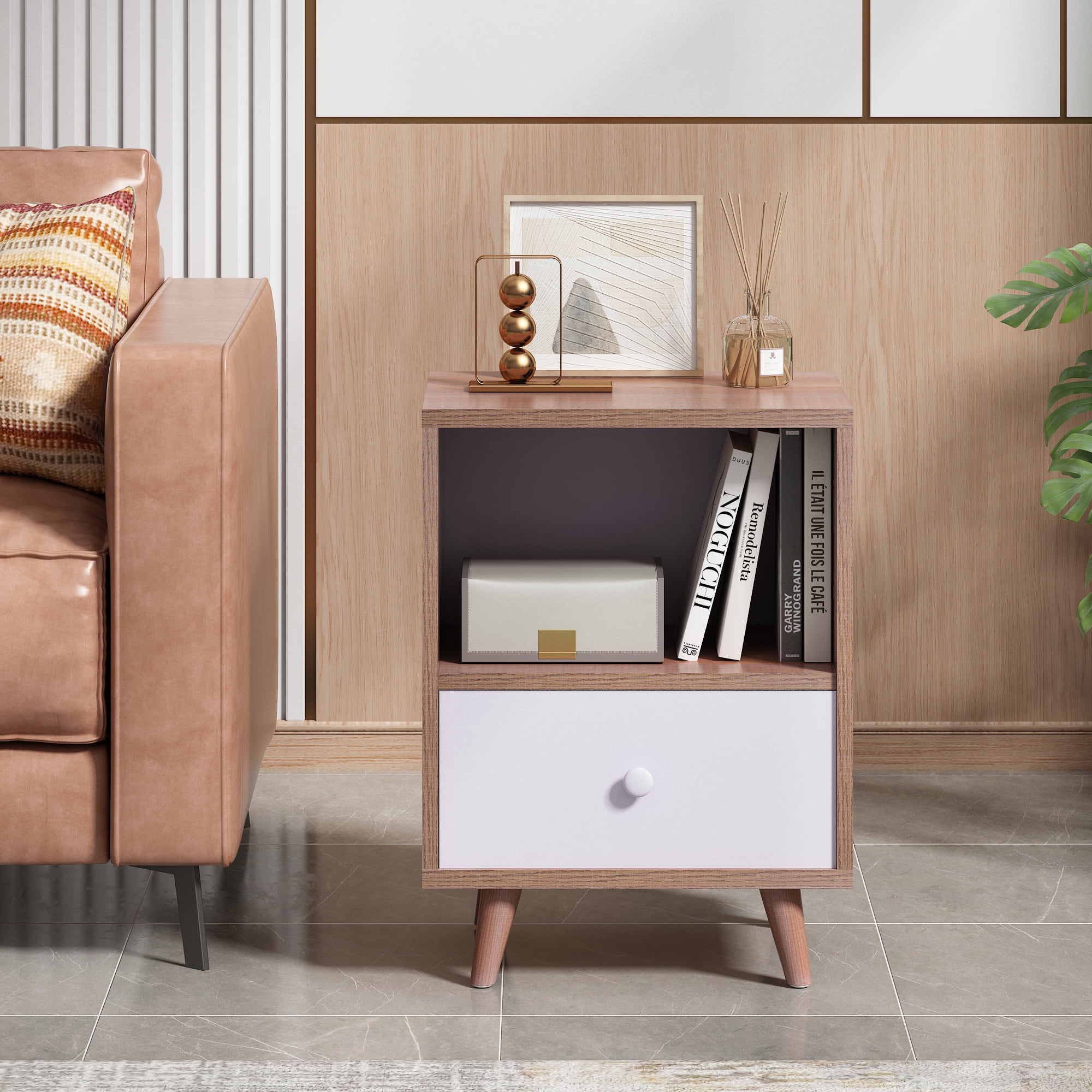 Jaxpety NightStand Bedside Table Furniture Open Storage with Drawer for Bedroom.Living Room.Home