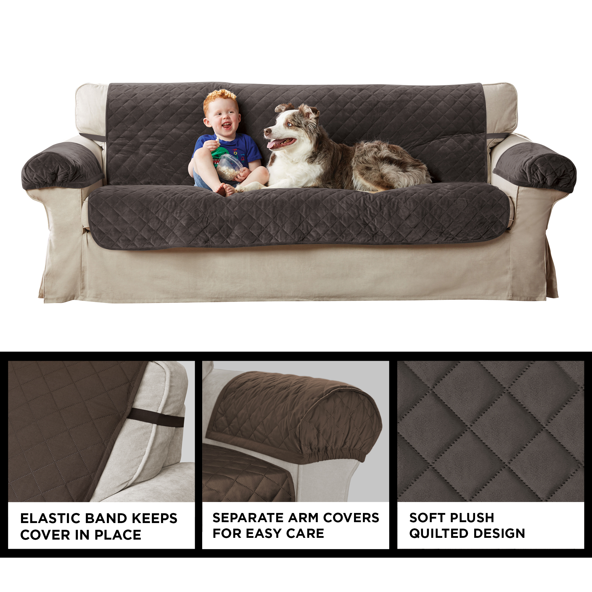 Mainstays 3-Piece Quilted Plush Sofa Pet Cover Multipurpose Furniture Protector. Chocolate