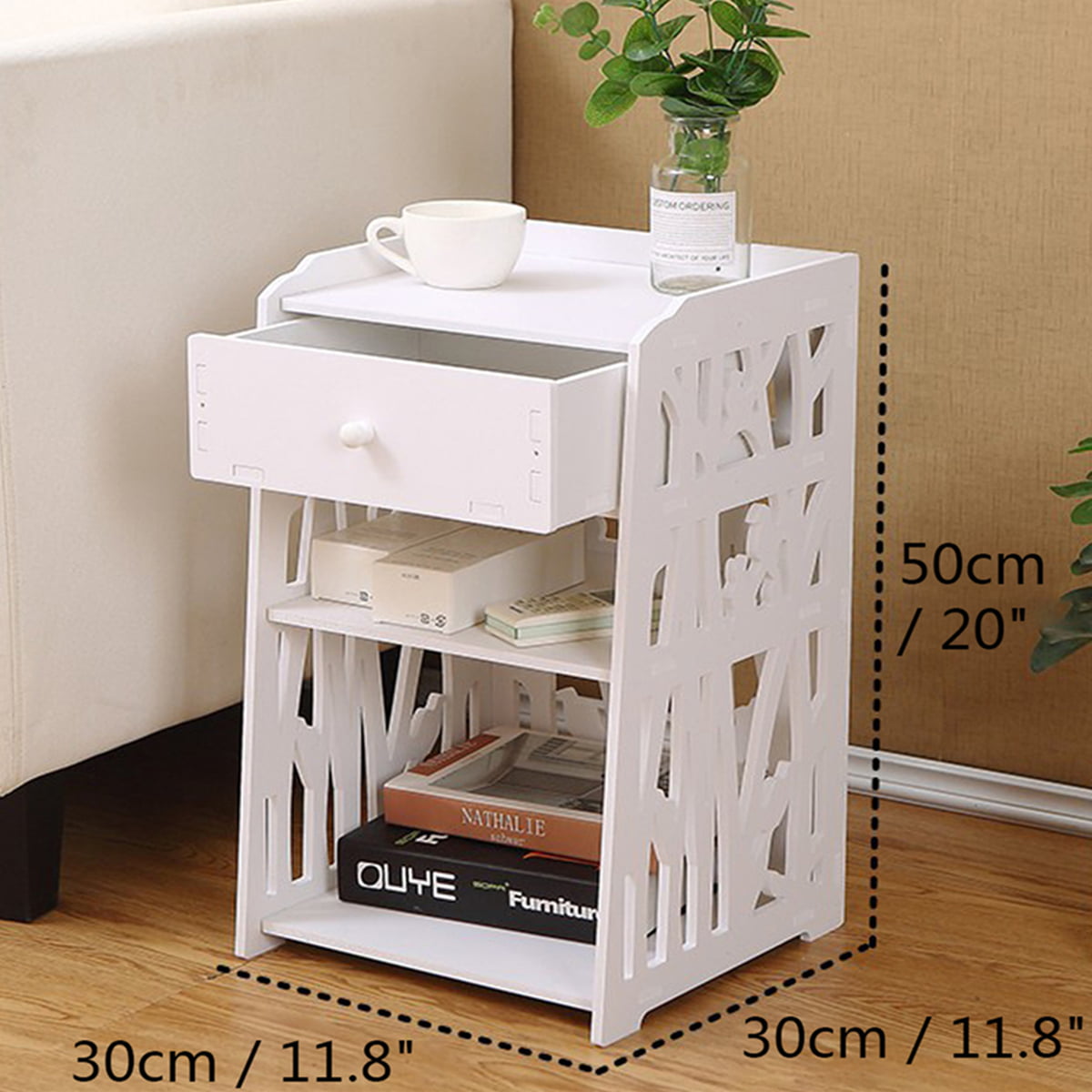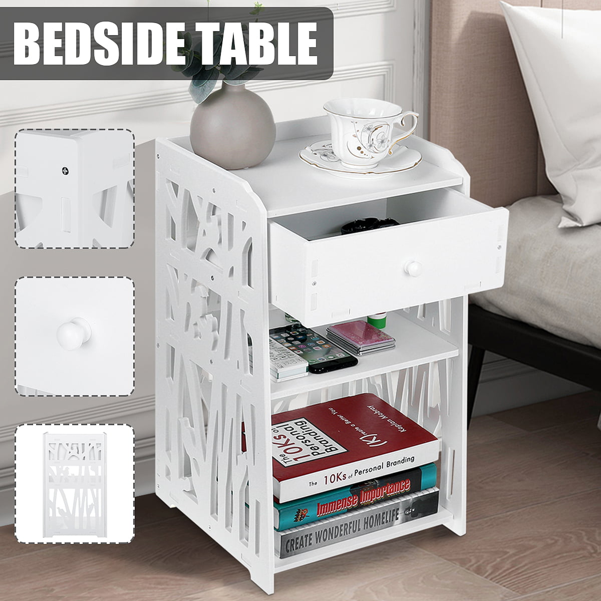 Nightstand.End Table.ZPL 20″H White Bedside Table with 1 Drawer and 2 Shelves.Modern Style Side Table for Bedroom Living Room