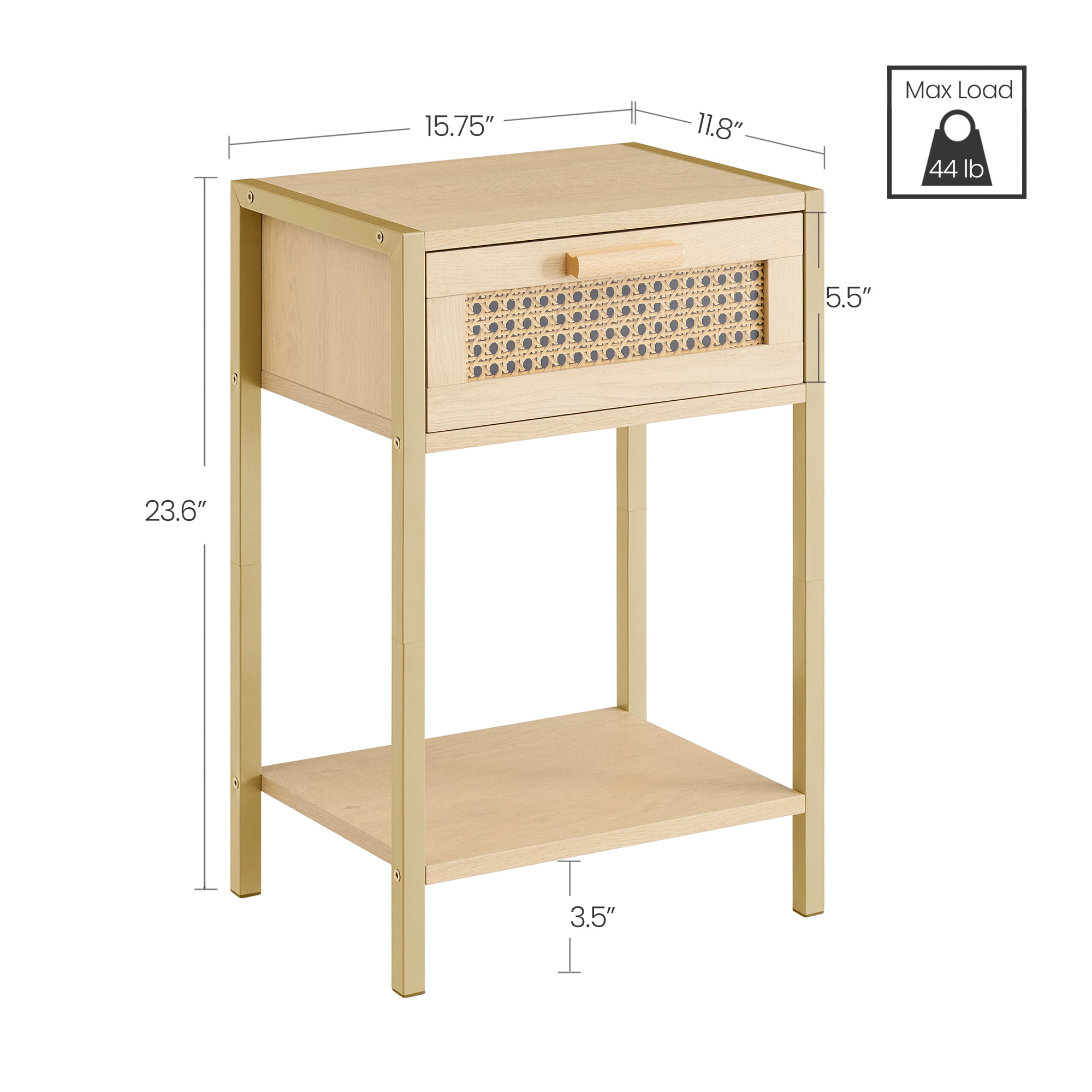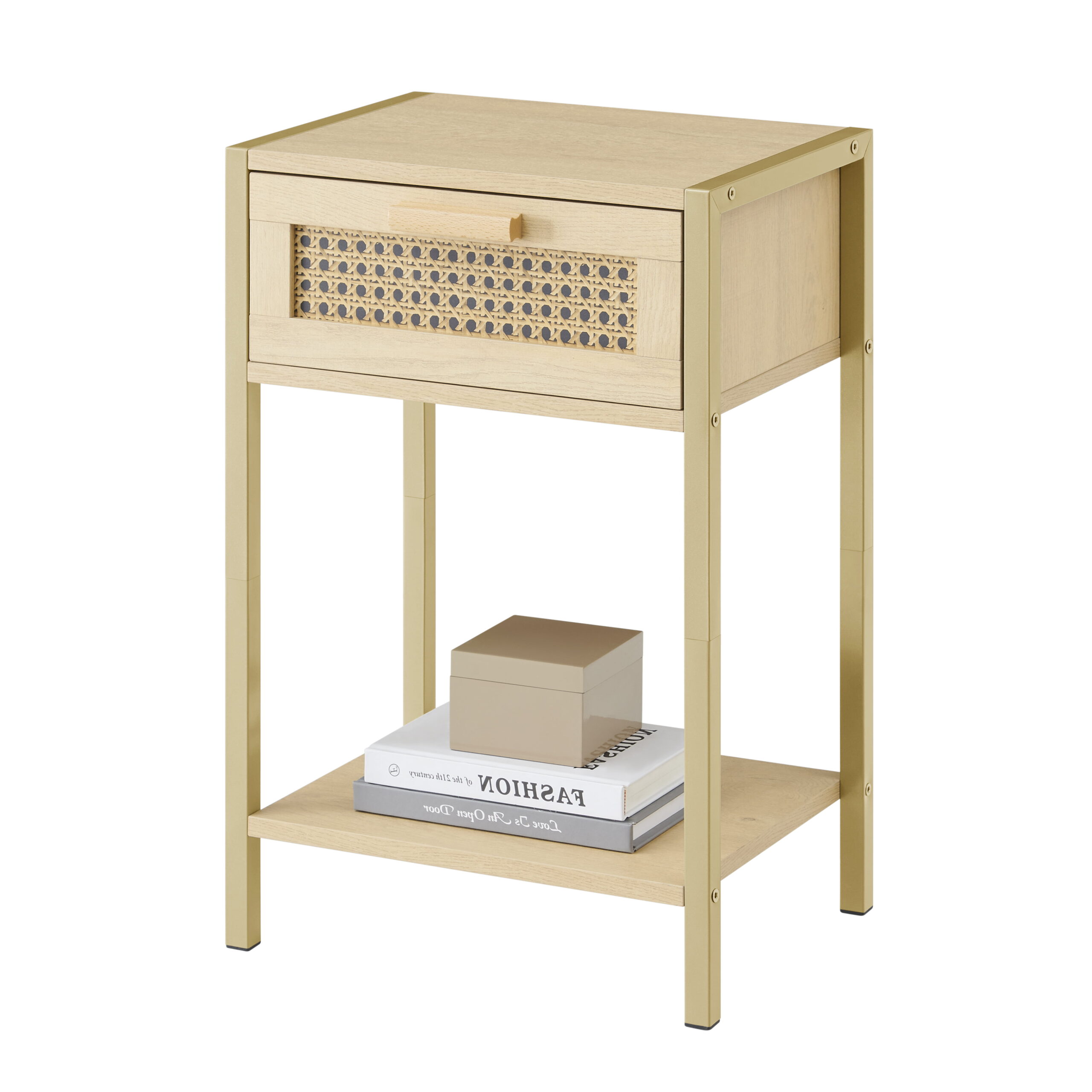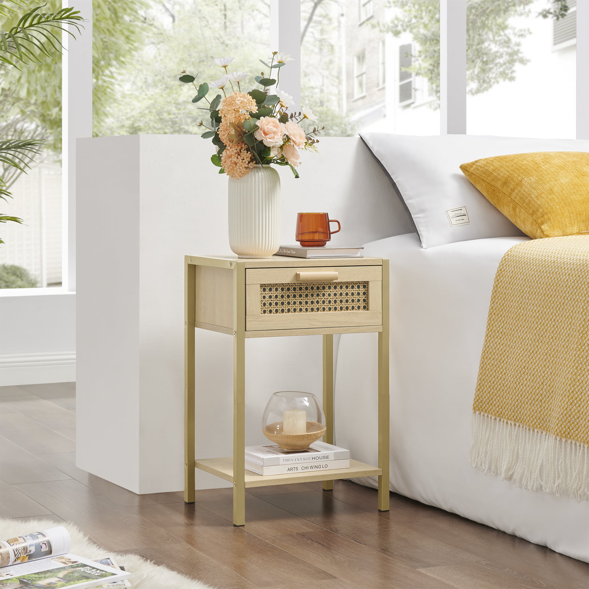 YOUKESI Rattan Nightstand. End Table with Shelf and Drawer. Bedside Tables. Natural 02G-003-CTG