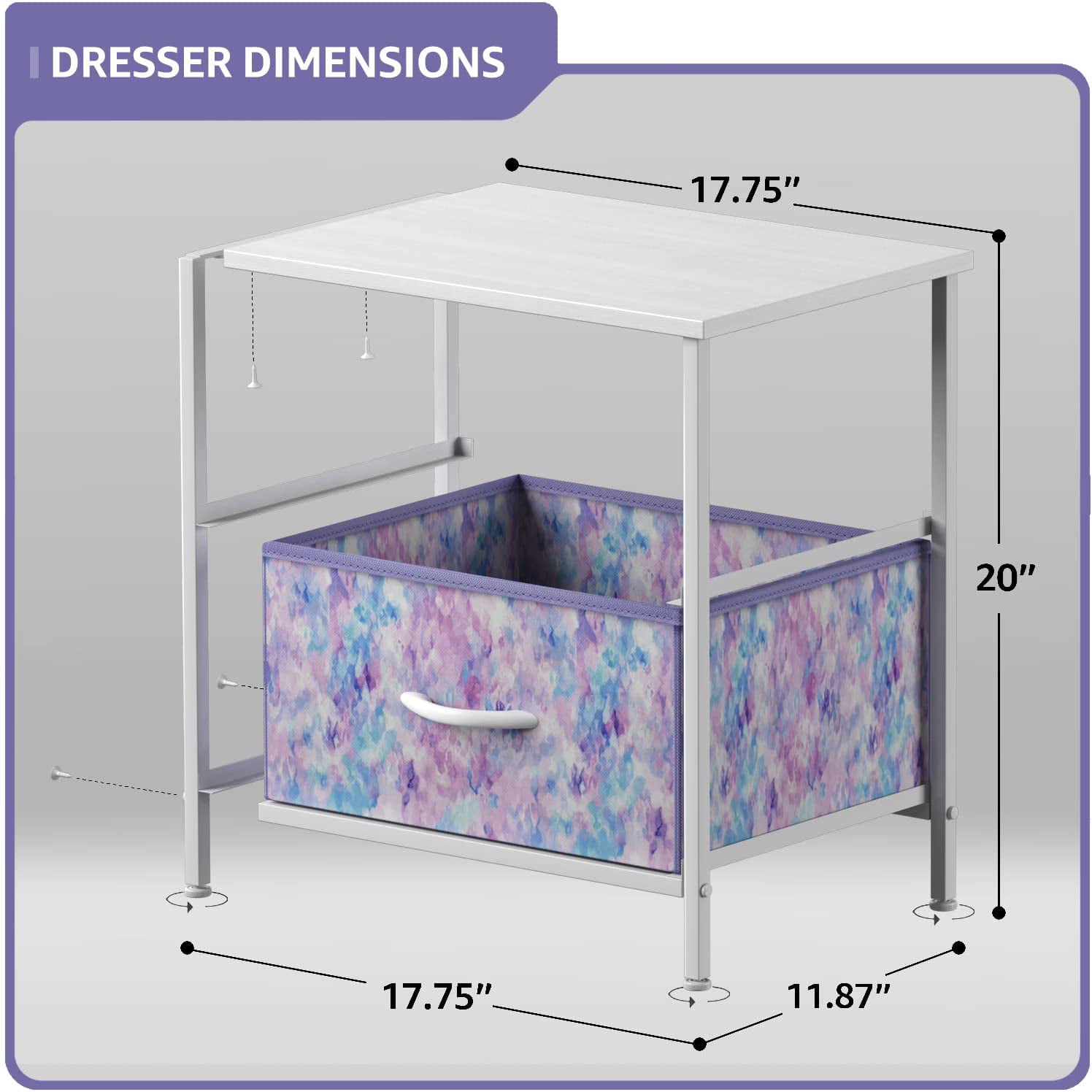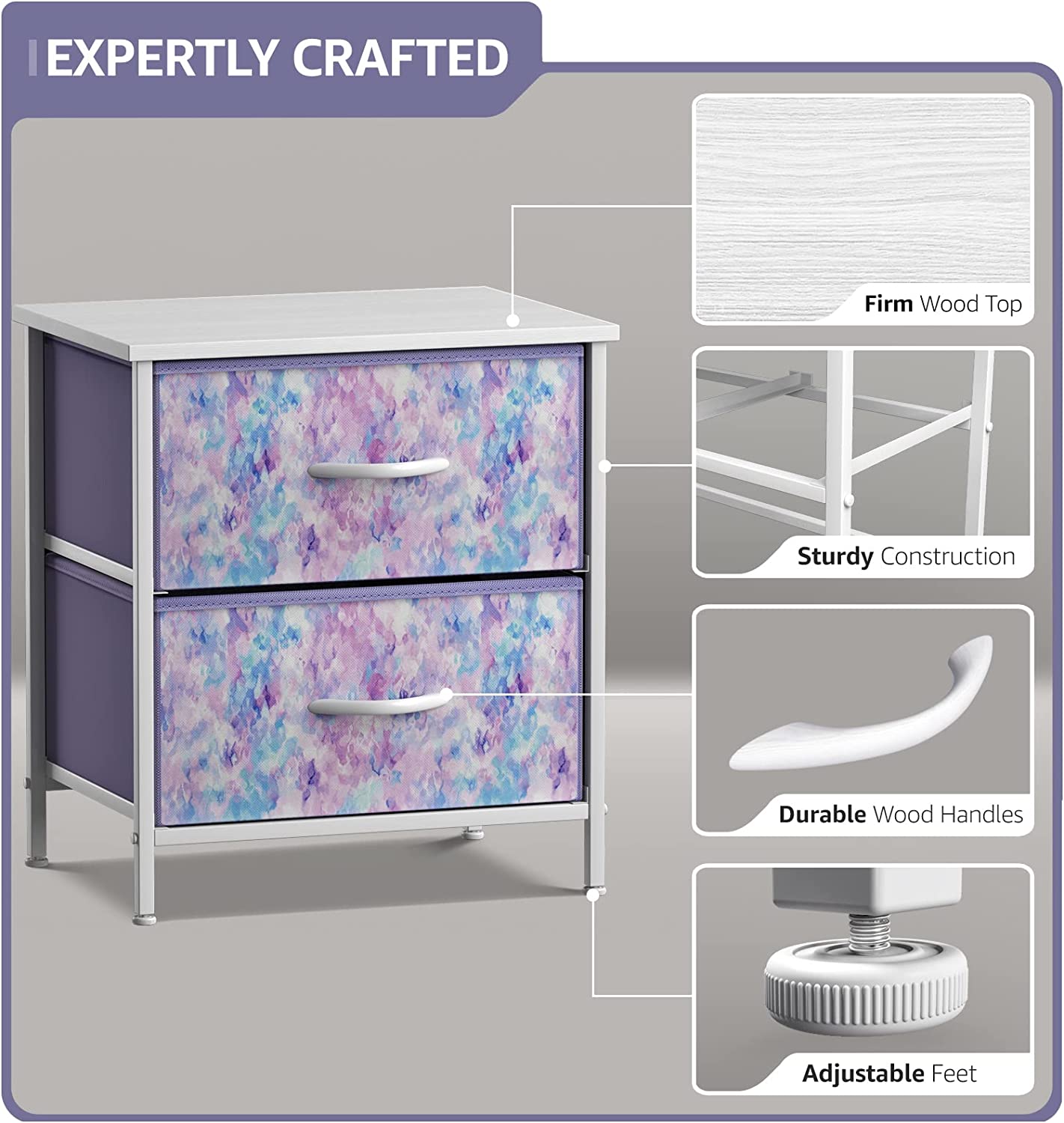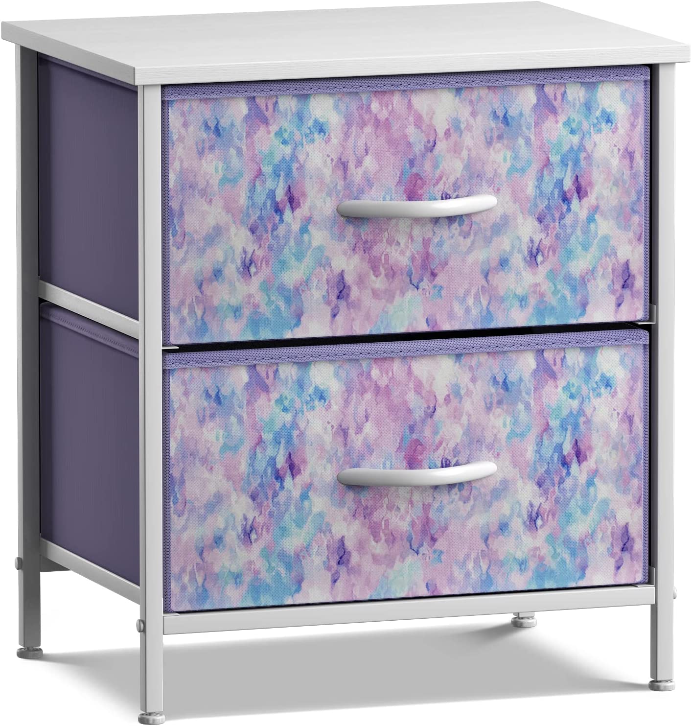 Sorbus Nightstand with 2 Drawers - Bedside Furniture & Accent End Table Chest for Home. Bedroom. Office. College Dorm. Steel Frame. Wood Top. Easy Pull Fabric Bins (2-Drawer. Blue/Pink/Purple
