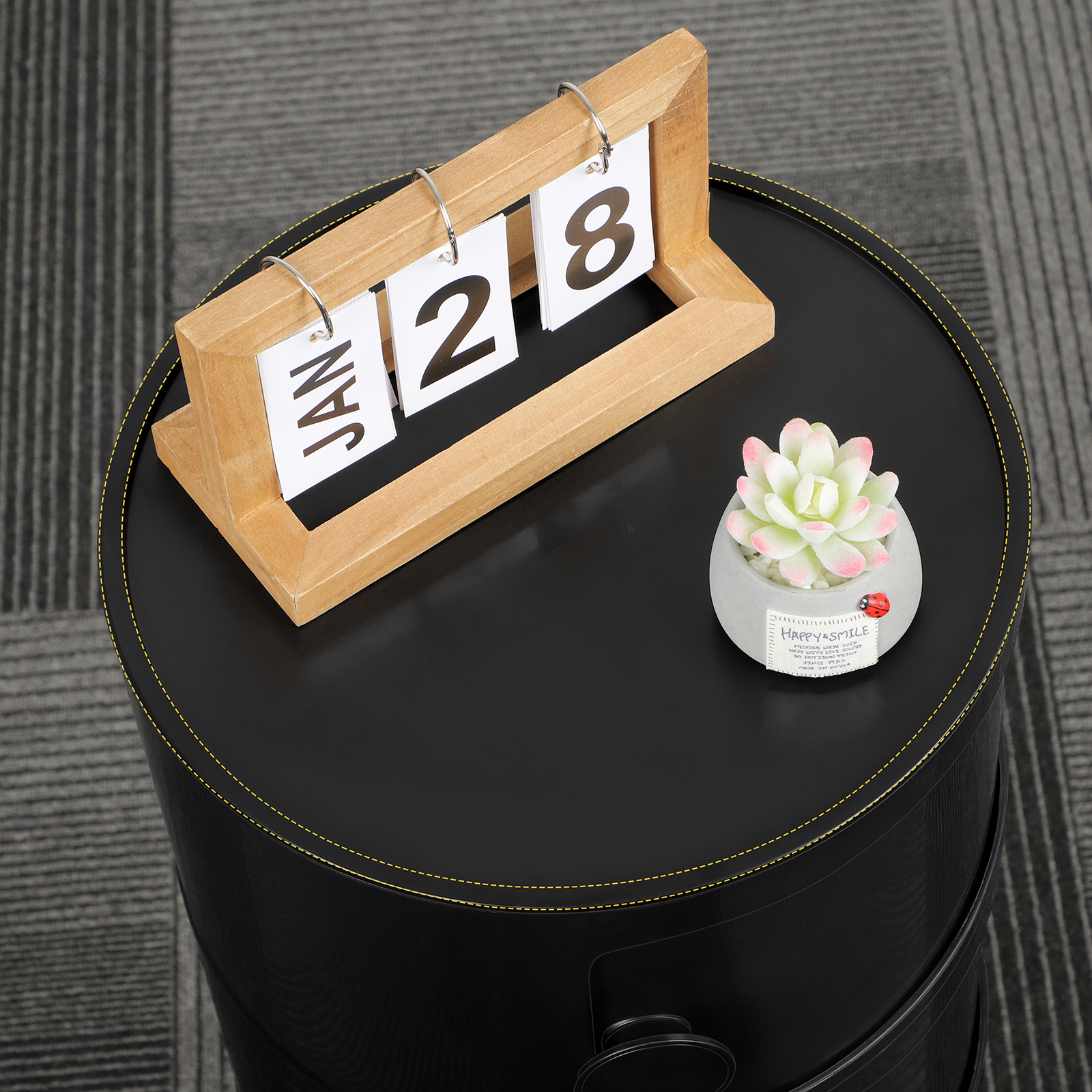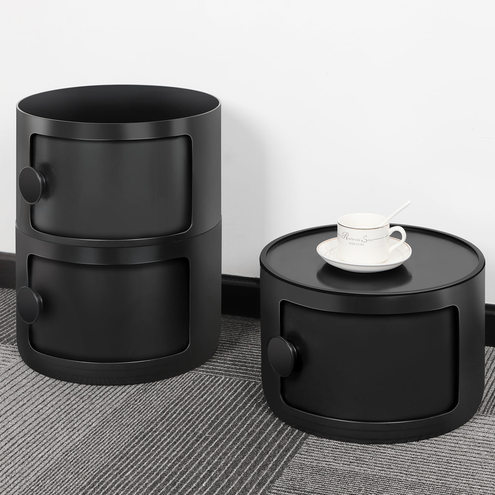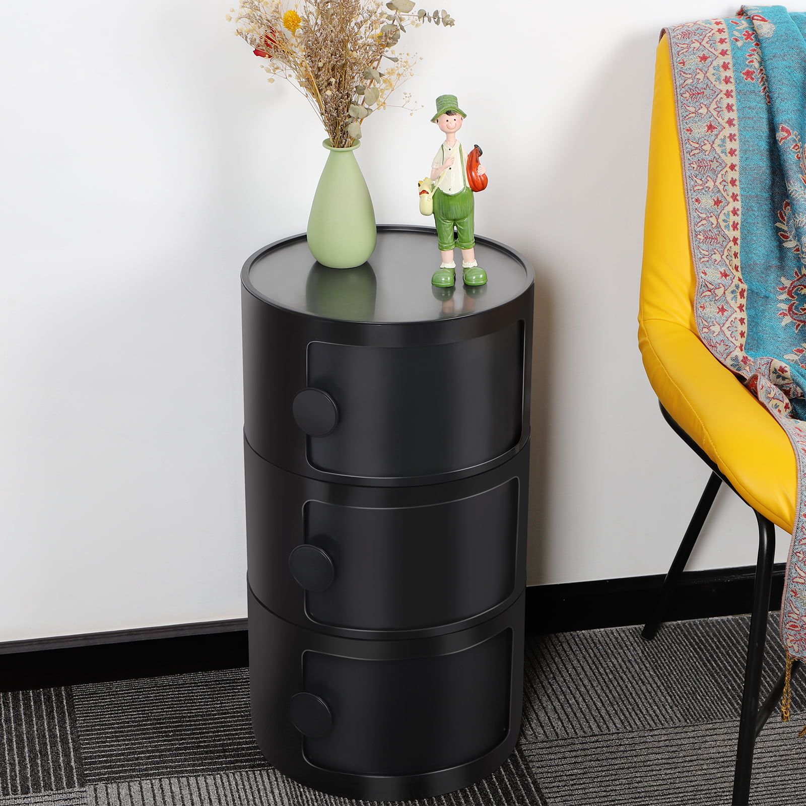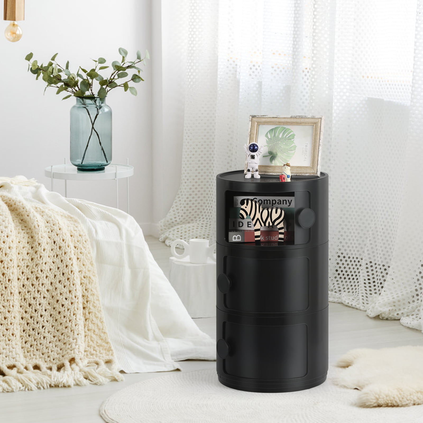 Oumilen 3 Drawer Sliding Barrel Modern Bedroom Nightstand. Black