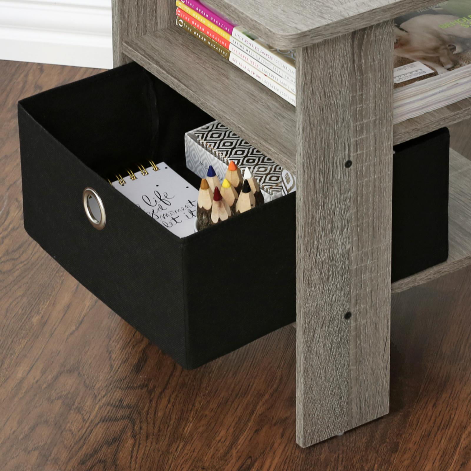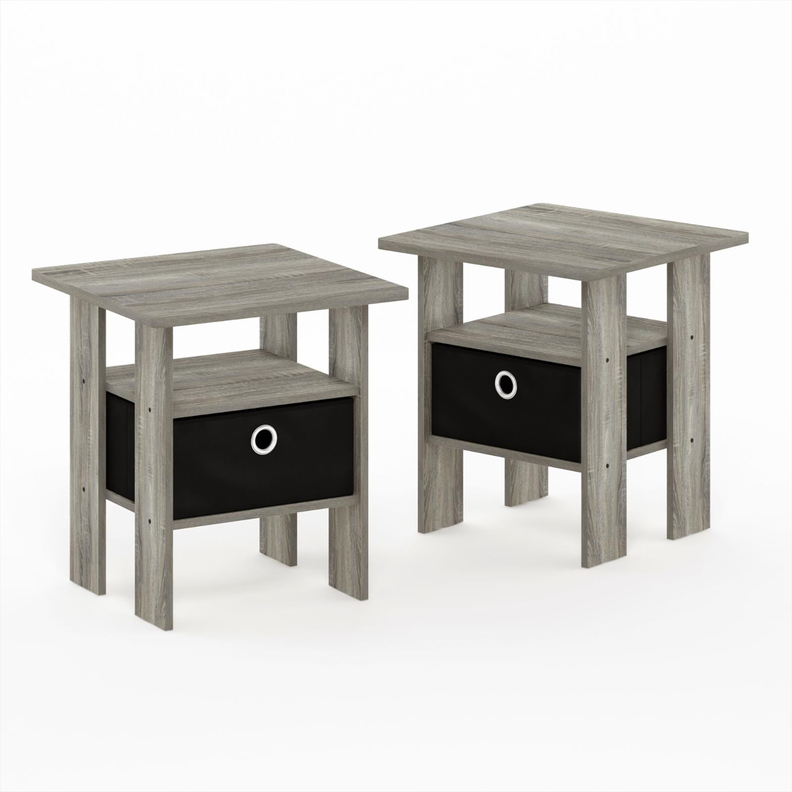 Furinno 2 Petite End Table Bedroom Night Stand - Set of Two. Gray/Black