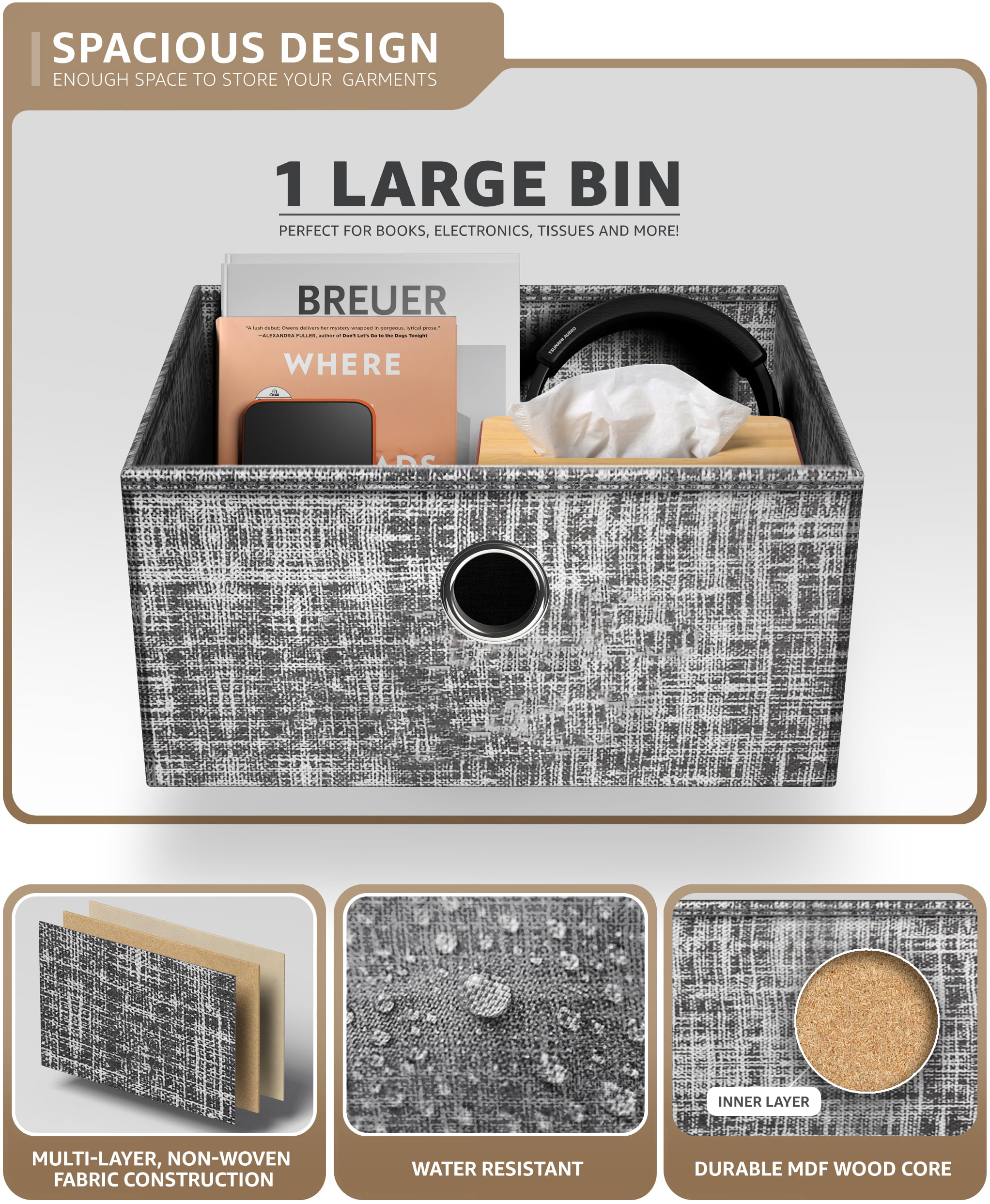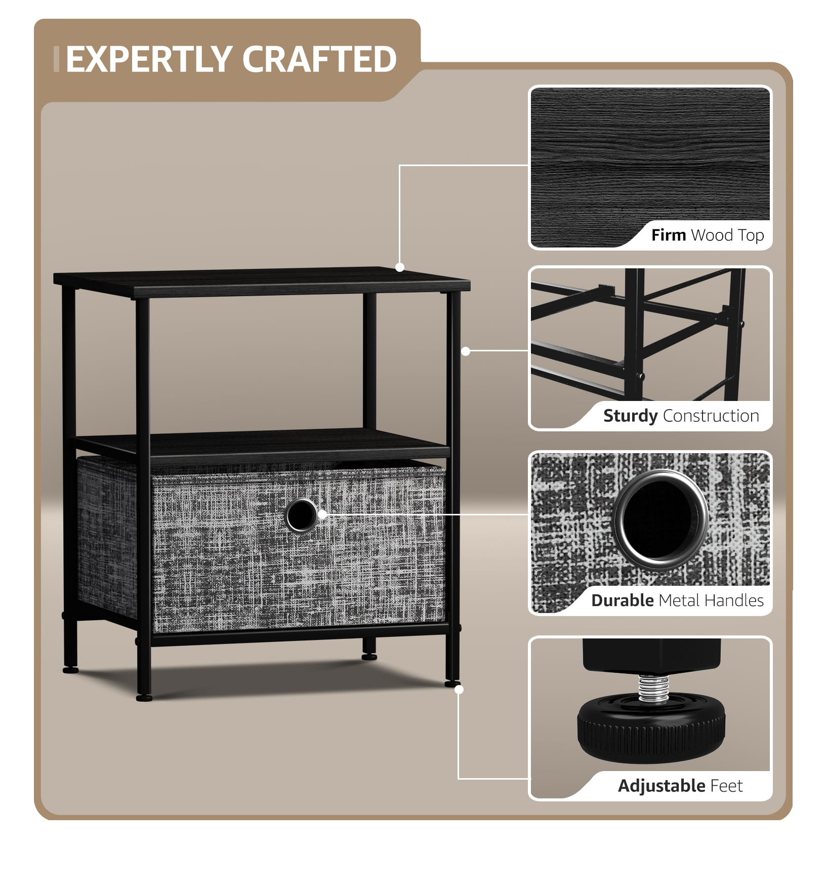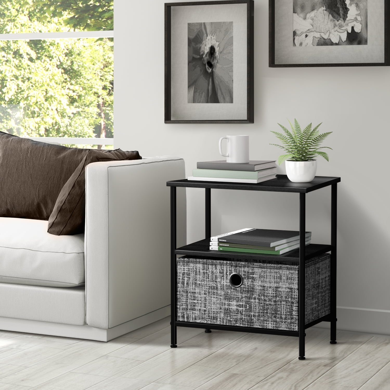 Sorbus Nightstand 1-Drawer Shelf Storage- Bedside Furniture & Accent End Table Chest for Home. Bedroom. Office. College Dorm. Steel Frame. Wood Top. Easy Pull Fabric Bins