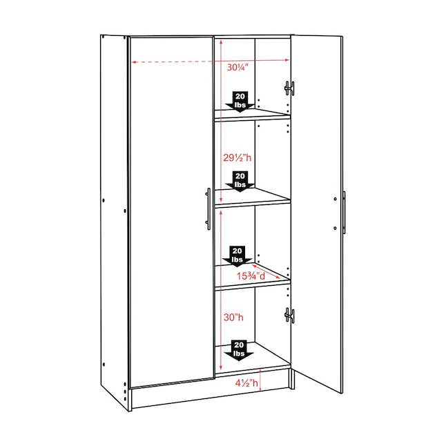 Prepac WES-3264 Wood Freestanding Garage Cabinet in White (32 in. W x 65 in. H x 16 in. D)