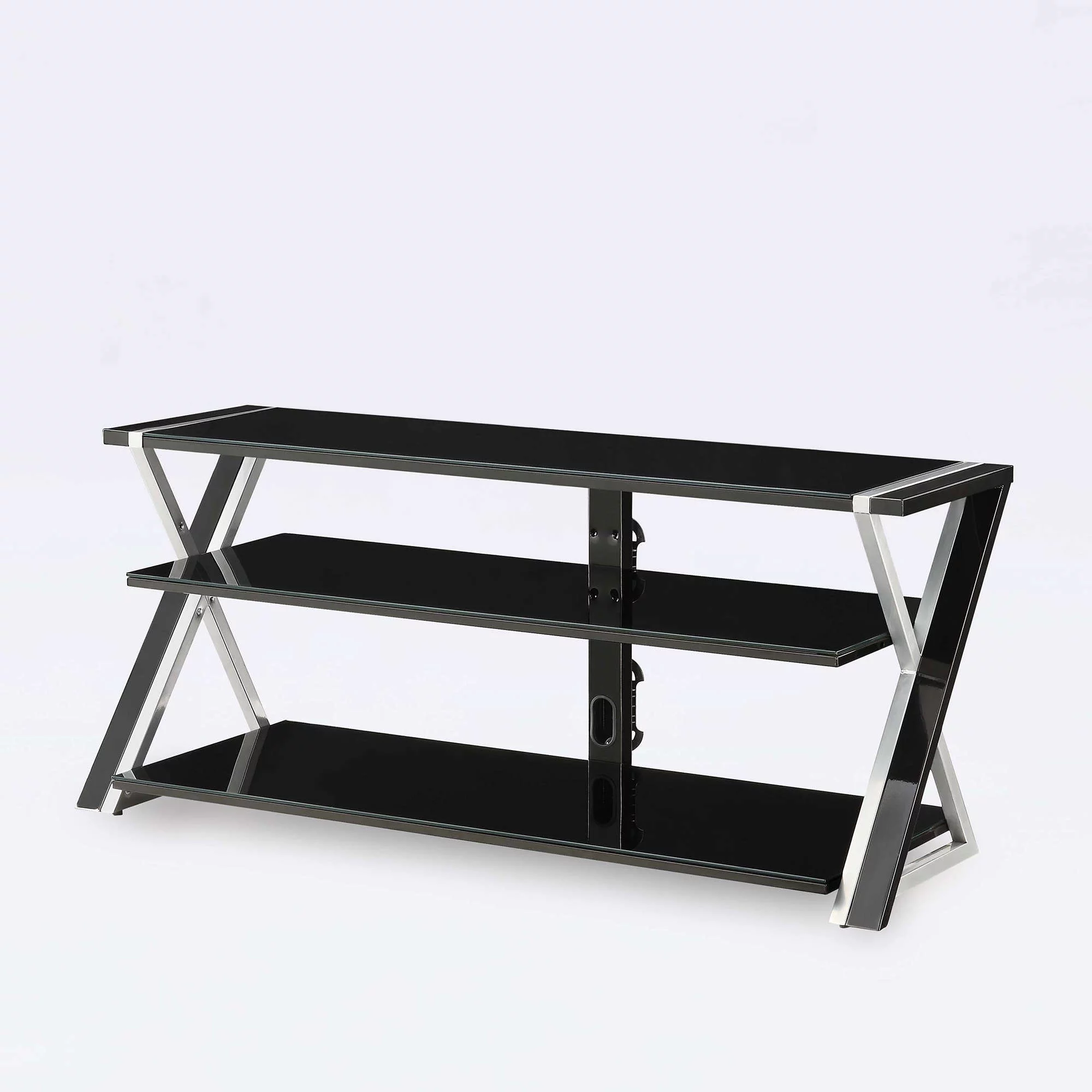 Whalen Furniture Black TV Stand for 60″ Flat Panel TVs with Tempered Glass Shelves